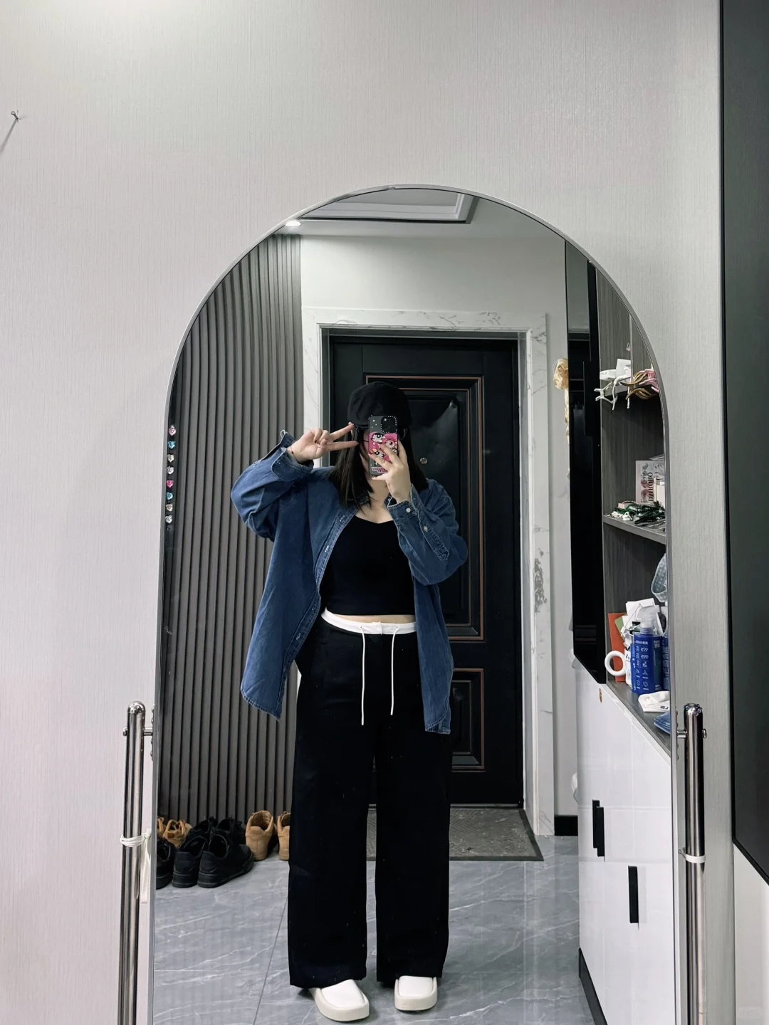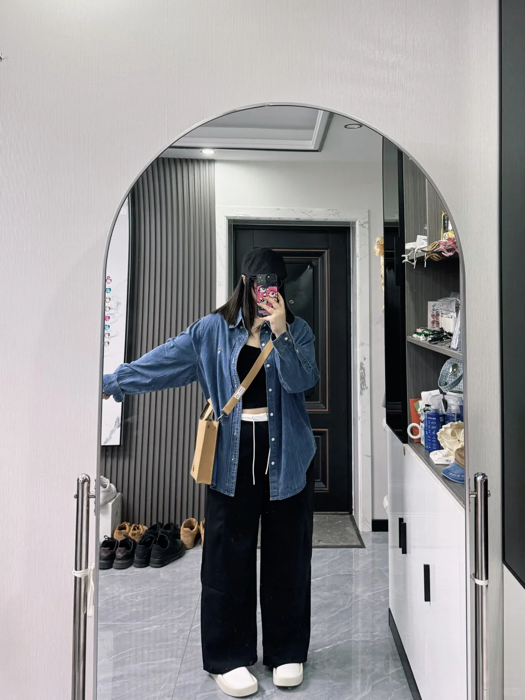牛仔衬衫 牛仔外套穿搭 穿搭 ootd每日穿搭 少年感穿搭 慵懒感穿搭 显瘦穿搭 显瘦神裤 ootd 200斤穿搭