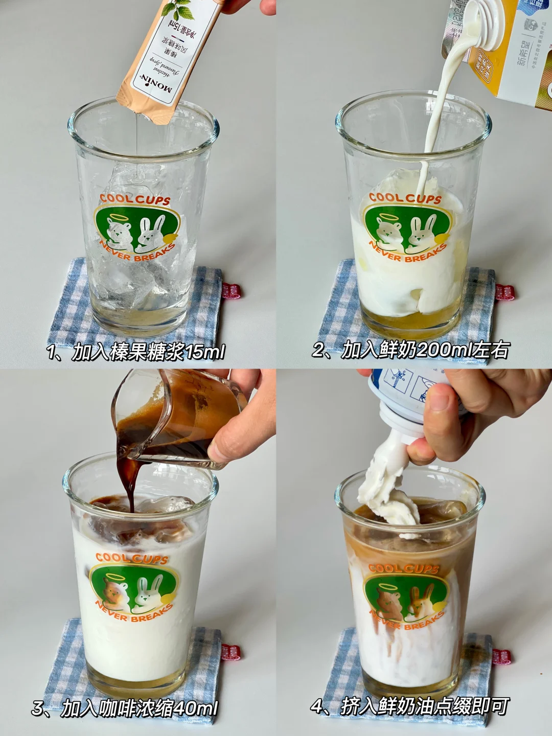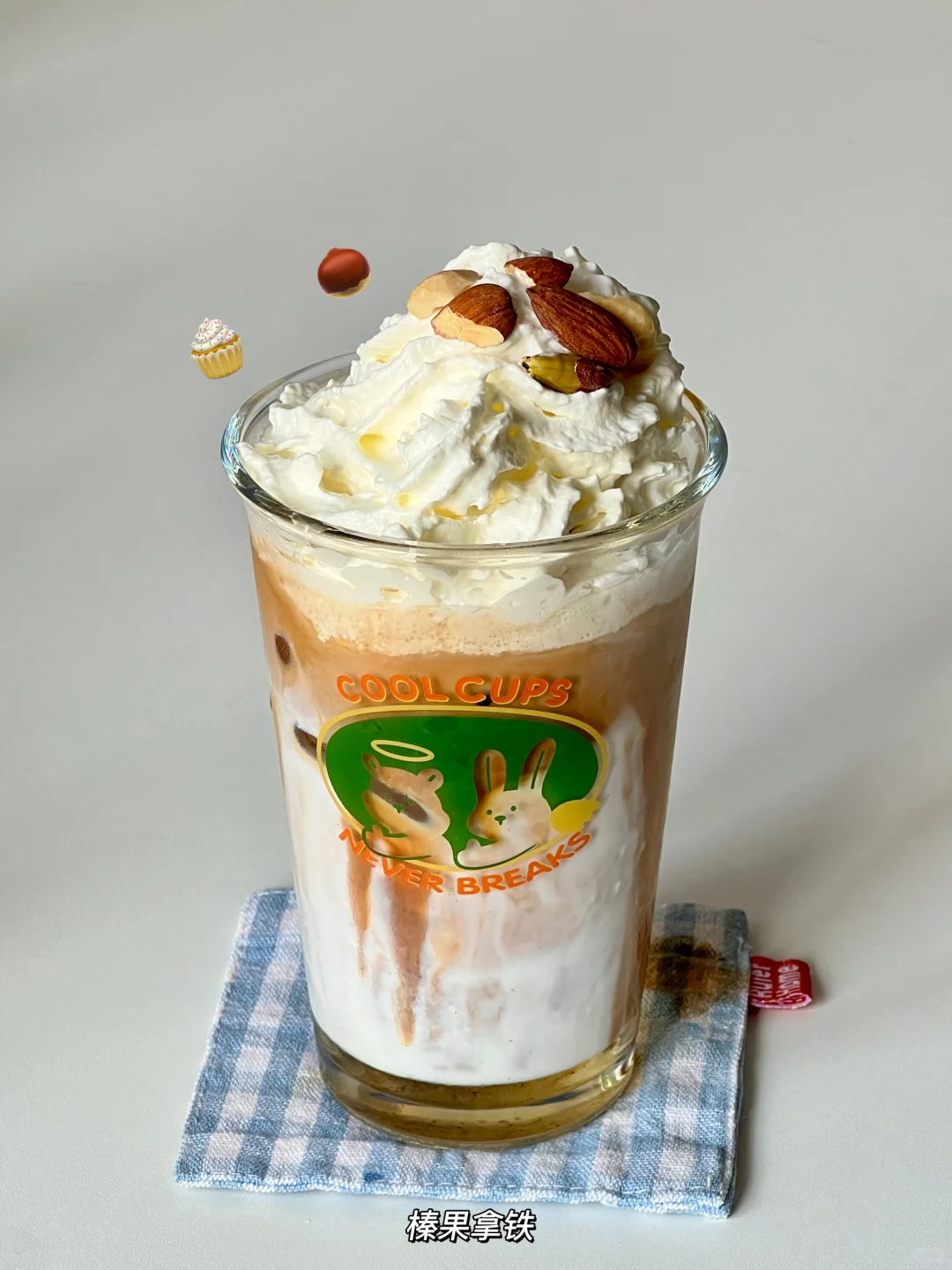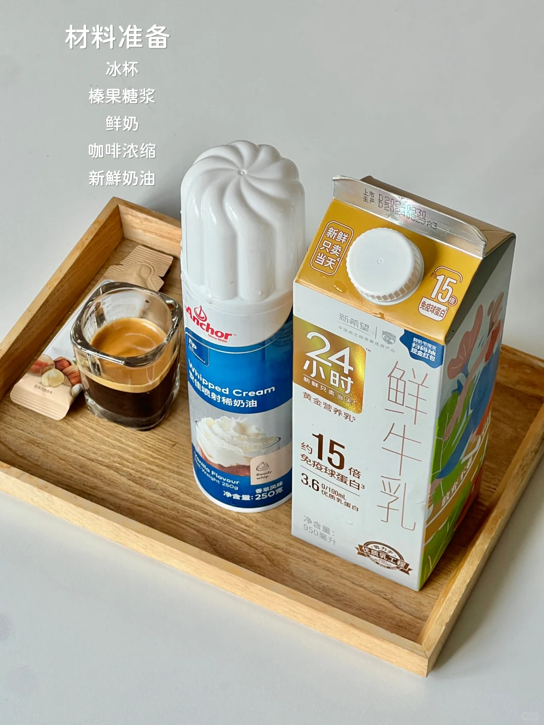 榛果糖浆、鲜奶、咖啡浓缩、冰块