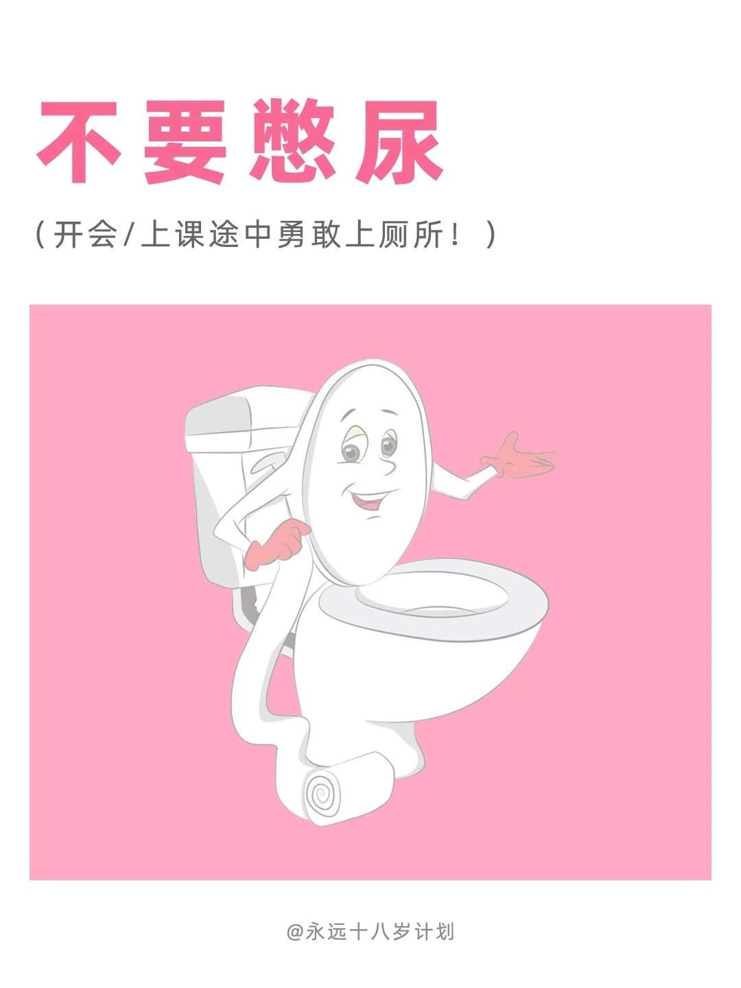 健康的身体才是年轻的基石,没有任何人和事比你的健康更重要,所以不管什么时候都不要憋尿!