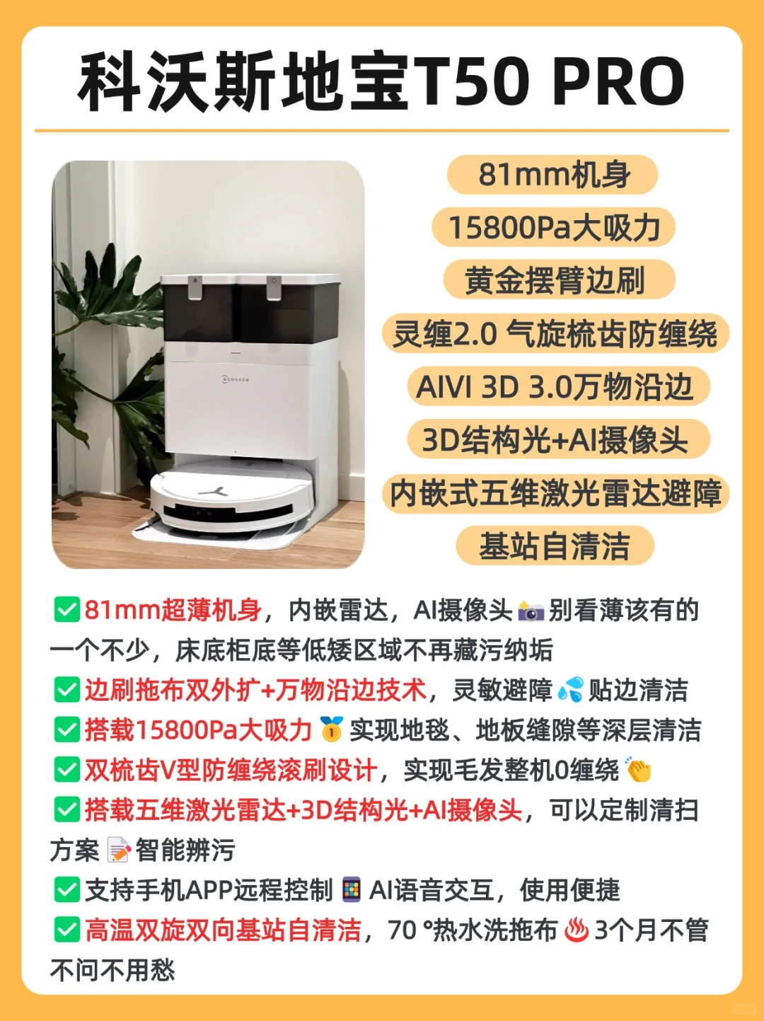 3️⃣选基站底盘自清洁,不用手动拆卸底盘清洗更省事,真正解放双手