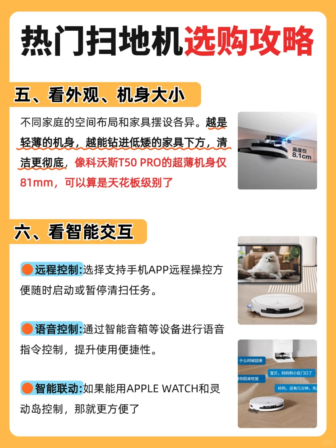 4️⃣选拖布自动抬升的:可抬升拖布的扫地机器人,轻松越障的同时还避免二次污染地板,保持地板清洁!