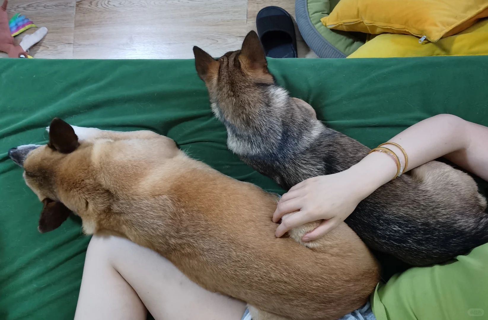 两位真皮抱枕手感都不错,大的是十三年精选老狗皮色泽金黄口感劲道,二号选手才满周岁狗皮很厚不要脸喜欢哭鼻子。(火锅嫌热不许妹妹贴贴,全家桶一边挨骂一边硬贴姐姐[失望R])