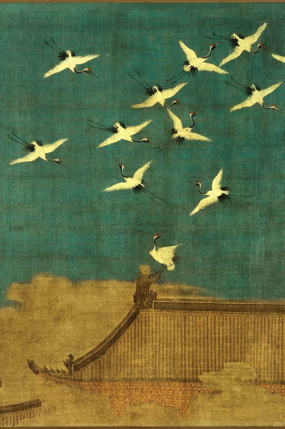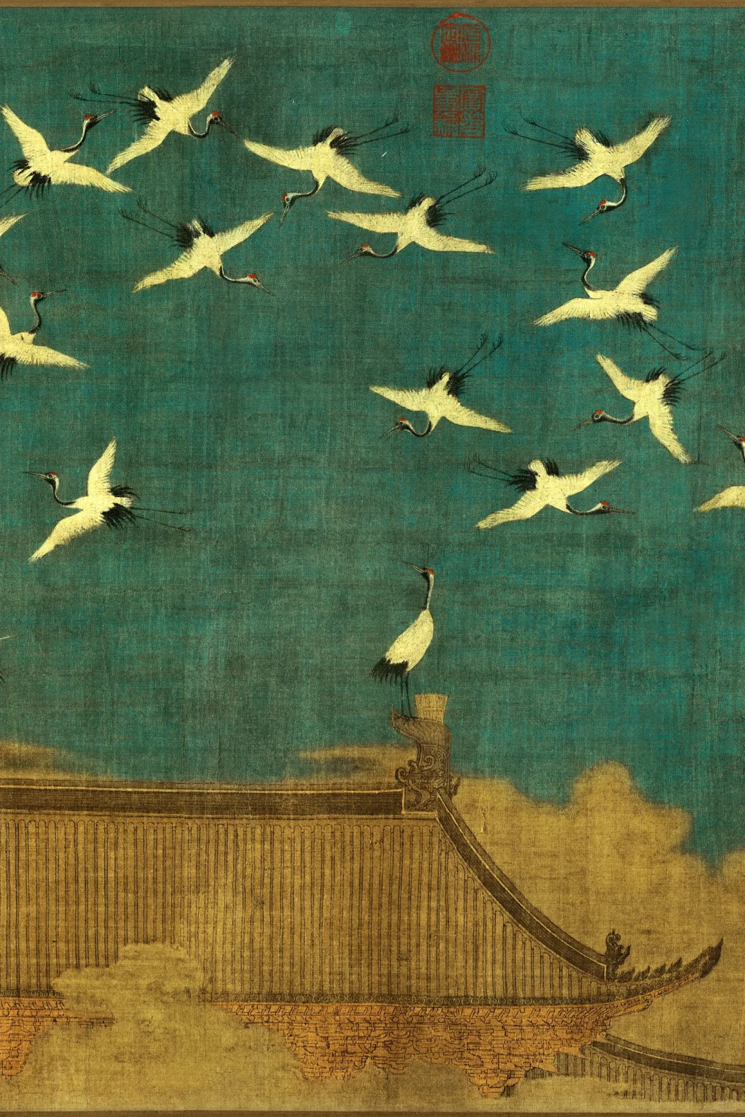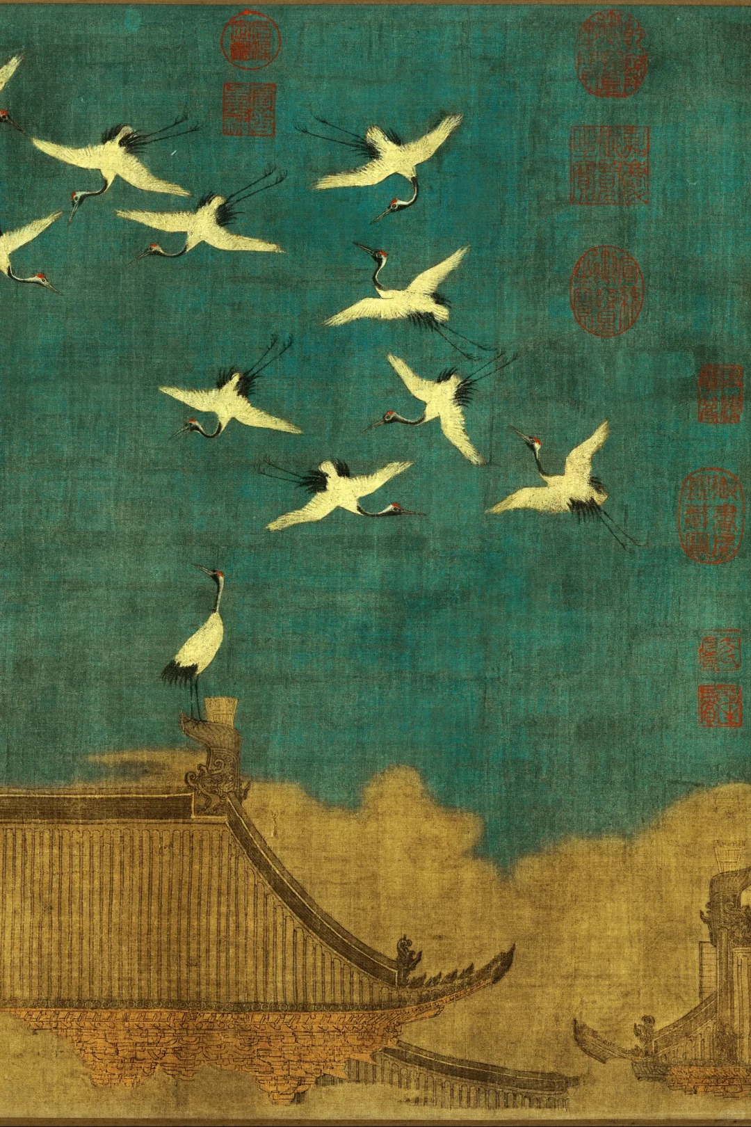 在中国传统文化中,鹤被视为吉祥、长寿的象征,具有多面的正面意义,如爱情忠贞、品行高洁、长寿等。因此,鹤的形象非常符合宋徽宗的自我定位,他在《瑞鹤图》中通过描绘群鹤飞翔的景象,不仅表达了对美好生活的向往,也隐喻了自己对国家和个人命运的期待。