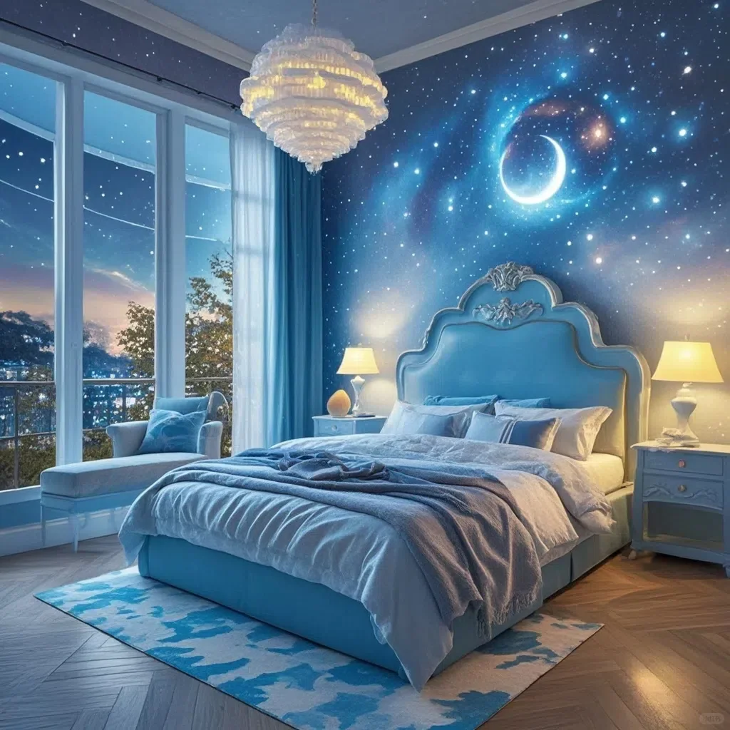 唯美的蓝色星空儿童房,守护孩子的梦幻世界