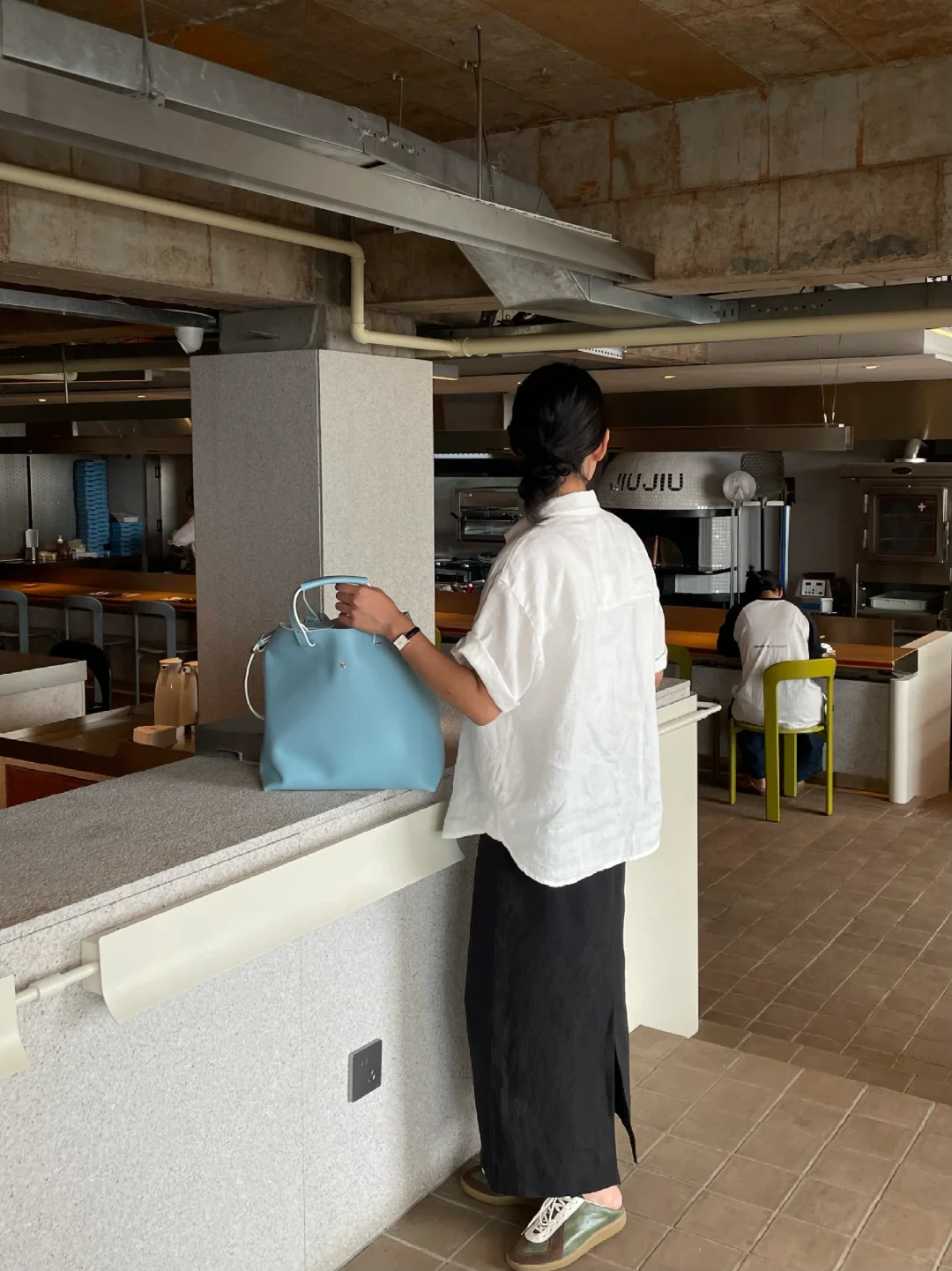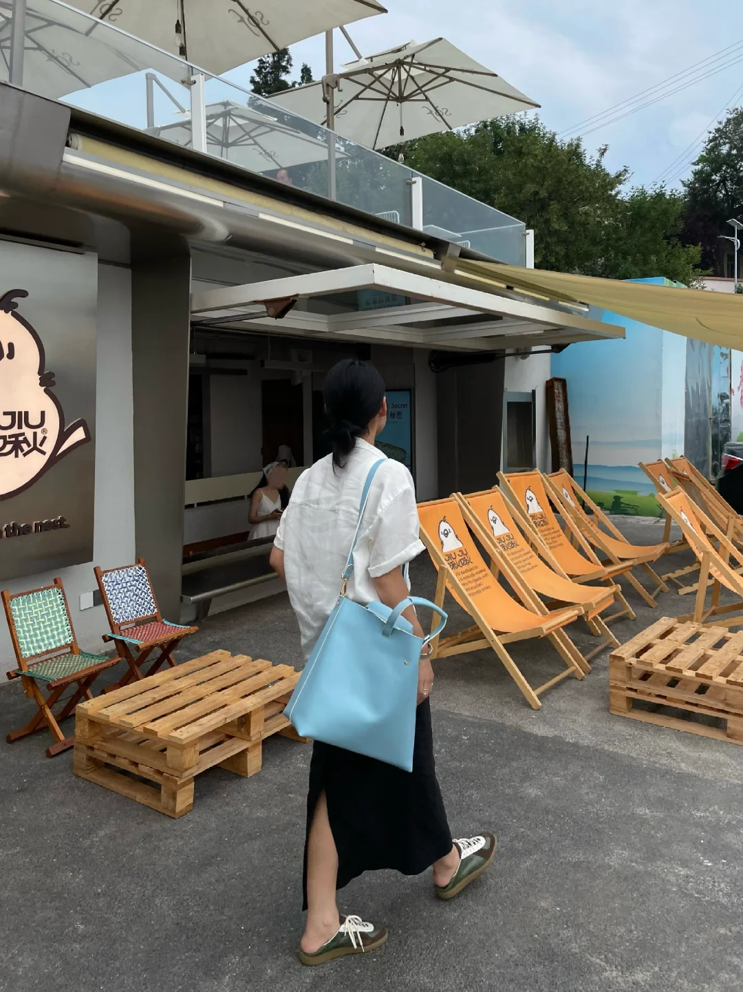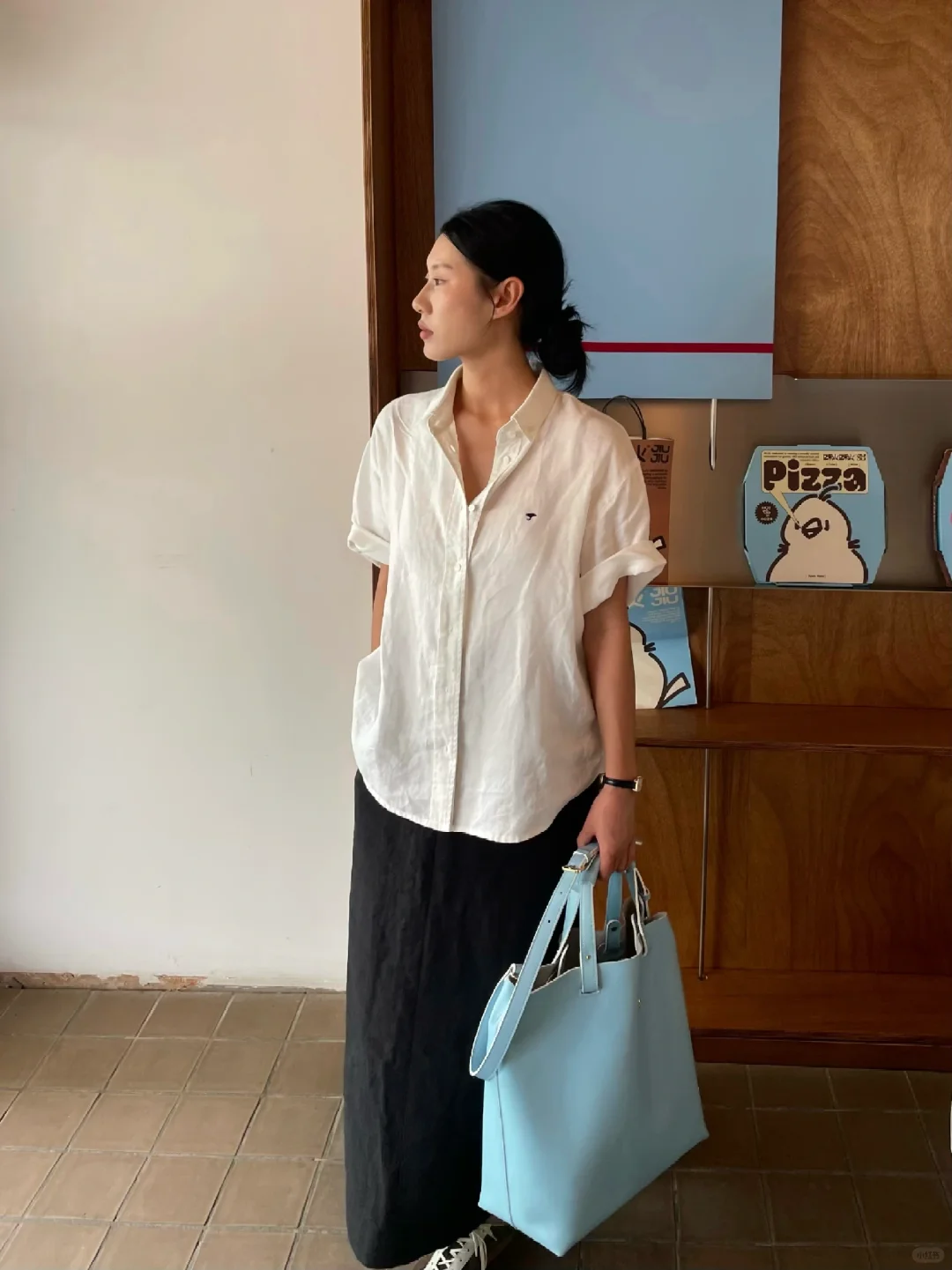 在啾啾实现看海自由 坠近很爱蓝色的包包 通勤休闲都很适配 搭配亚麻材质 是我喜欢的松弛小精致氛围 -