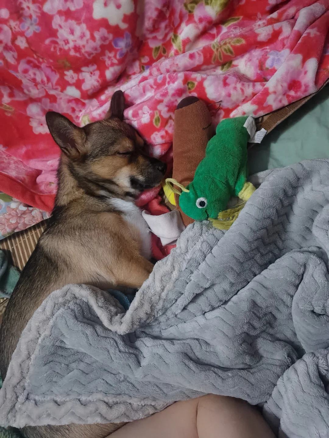 谁家小狗周岁了没断奶睡觉还要抱着玩具