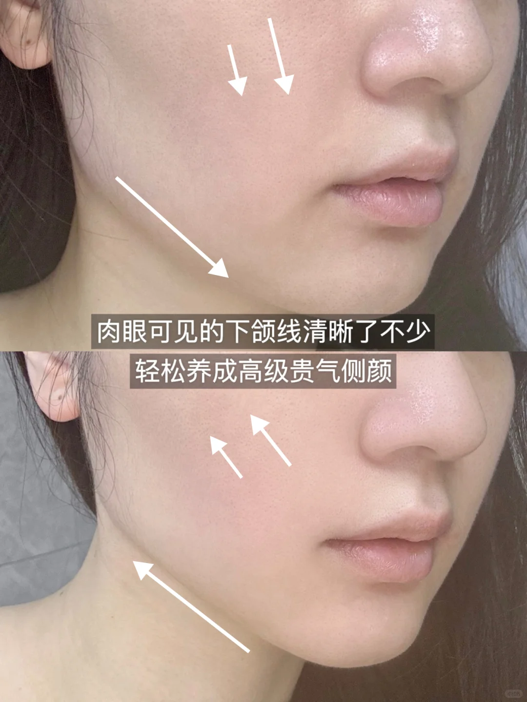 坚持用下来能够感觉侧颜就像是被一张弹力网向上拉一样,上镜都不会显得松弛,特别是下颌线这块贼饱满,“比人生还清晰的下颌线”在此刻有了具象话,整个面中就像是打满气的气球一样饱满又嘭弹,传说中的贵气侧颜杀也是轮到我了。