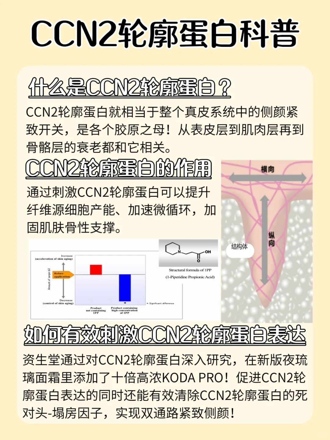 资生堂研究发现,CCN2轮廓蛋白多少与年龄无关,换句话说就是熟龄肌也能通过促进CCN2轮廓蛋白提升面部轮廓。