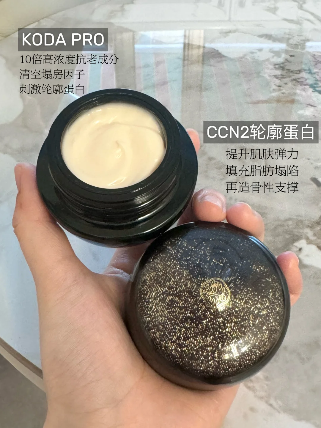 在资生堂新升级的夜琉璃面霜里面就添加了10倍高浓专业成分KODA PRO不仅能给平时因为熬夜紫外线带来的塌房因子一键消除,还能刺激CCN2轮廓蛋白表达,让它从i人变身成为e人,让它像是打了鸡血一样提升胶原蛋白、弹性纤维、透明质酸这三大年轻要素,就像是把肌肤的地基给打好了,同时还给你稳固支撑让它不易塌最后还安上了侧颜轮廓固定术,这样一套黑科技,饱满面中紧致下颌侧颜轮廓紧致不是轻轻松松。