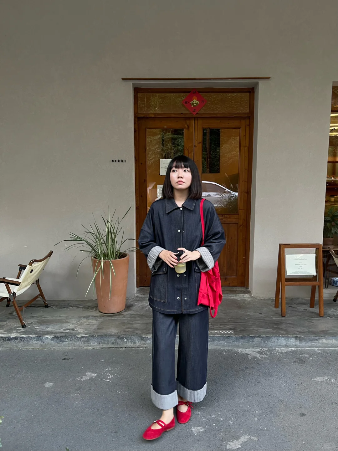 少女清新穿搭,黄色吊带裙搭配米色长裤,轻松惬意。