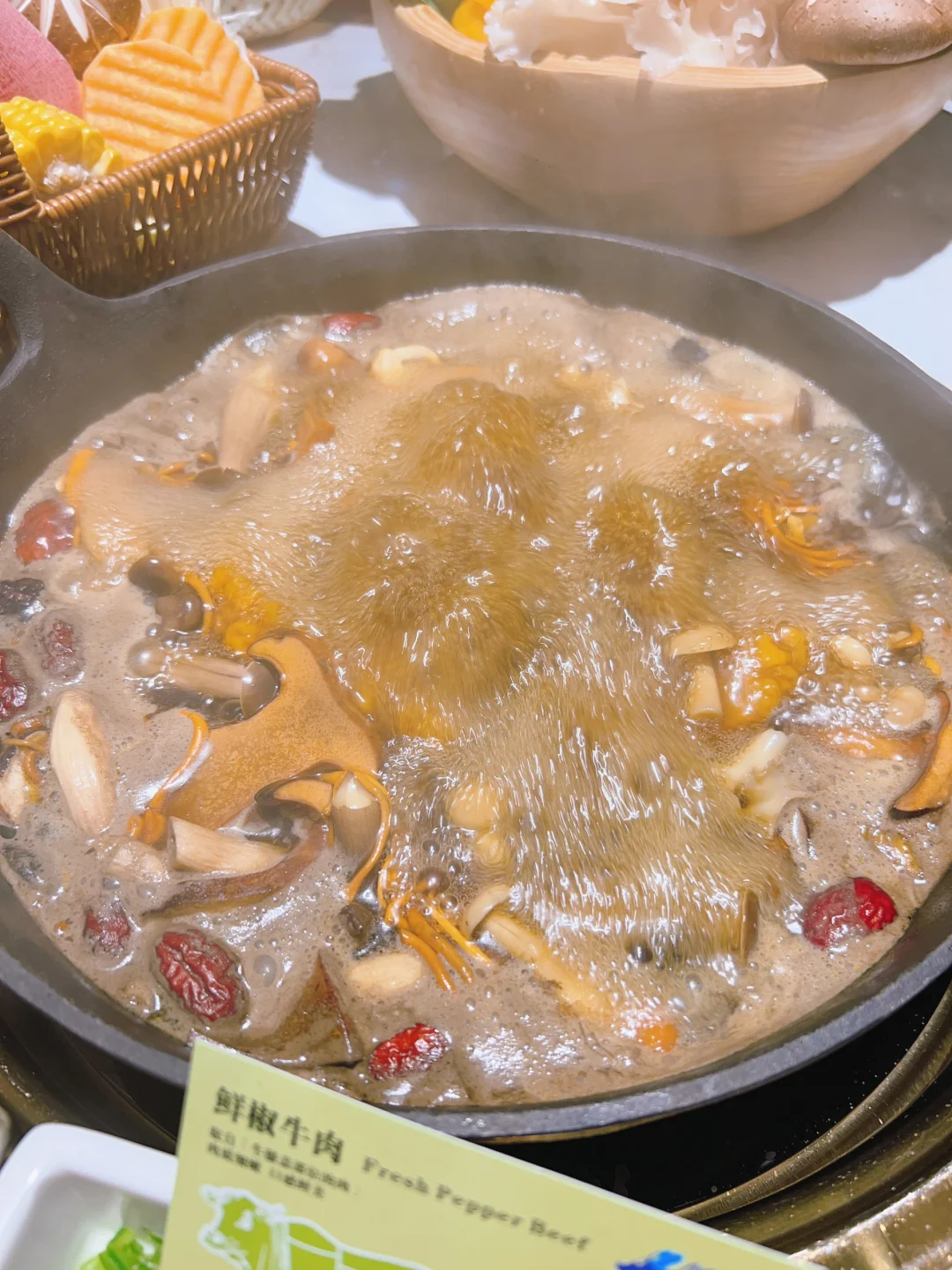 我们去的是德庄兴泰店 这次新上了菌王锅底 汤很鲜 菌子很好吃😋 清远鸡也很嫩 还新上了四种嫩牛肉 各种甜品也超级可爱 饮品的酸角汁很开胃🤤 大家可以去试试哦!