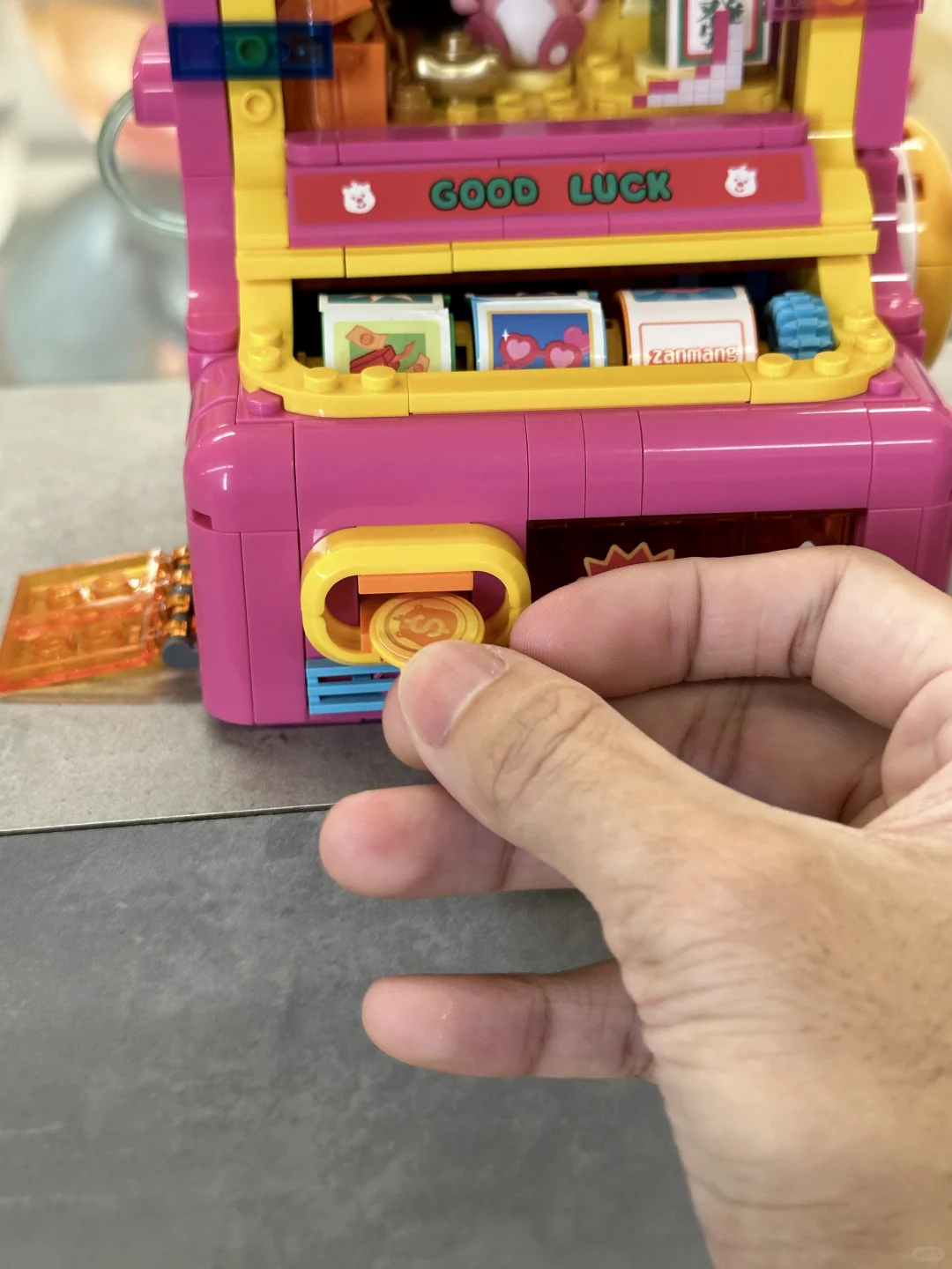 loopy玩趣系列,“洗了蒜了、狸进斗金、狸有冰吧”,每款都好乖、好有梗哈哈[哇R][哇R] “洗了蒜了”是一瓶沐浴露,可按泵头,浴室吊灯可发光[偷笑R] “狸进斗金”是一台老虎机,内置可投币,轻拨🕹️可抽奖,背后还有掘金小场景[黄金薯R] “狸有冰吧”是一个冰吧,外置美食氛围,头顶吊灯可发光,后门可打开进货[暗中观察R]