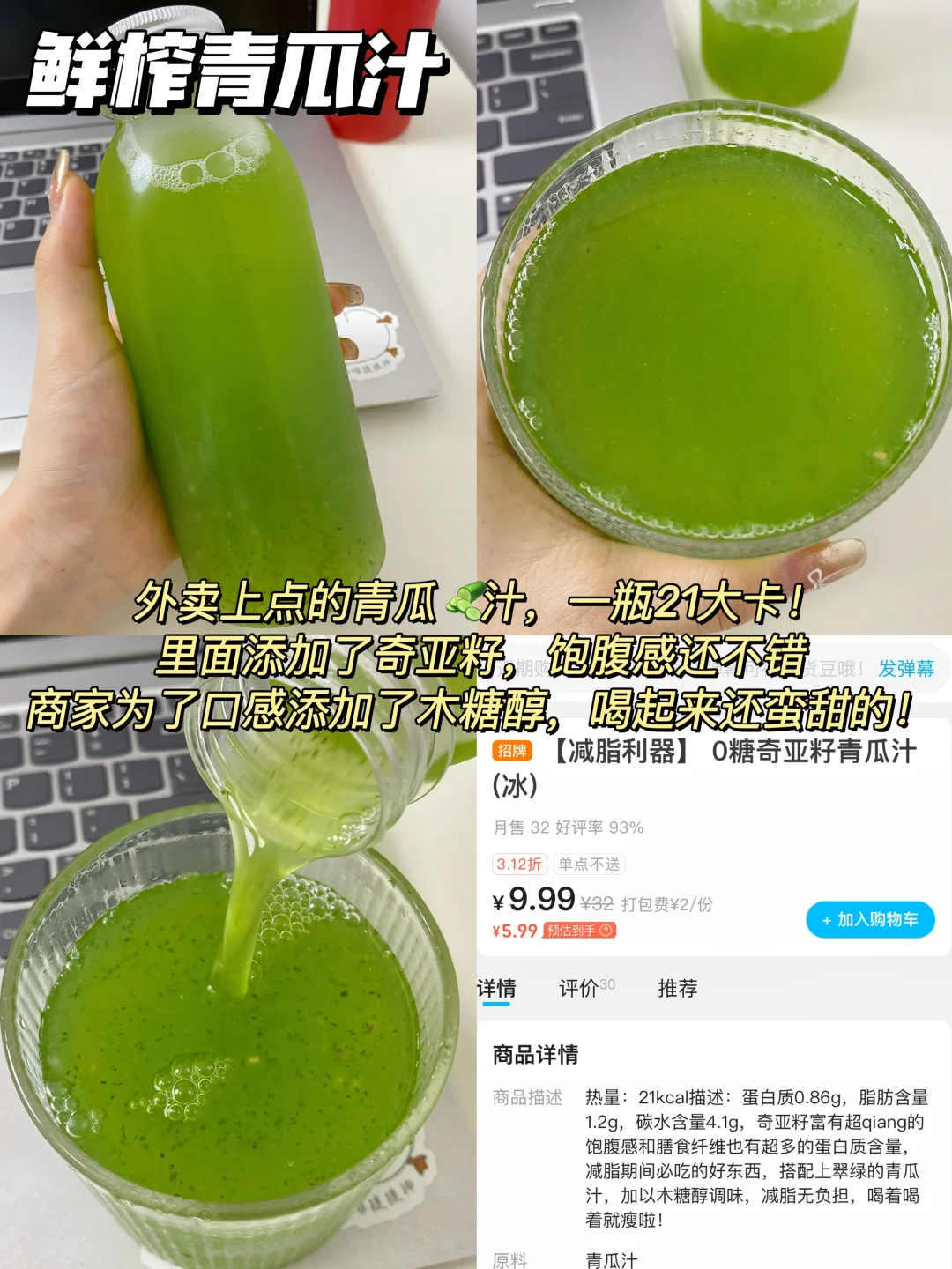 以前喝过的青瓜汁,里面添加了奇亚籽,饱腹感还不错!商家为了口感添加了木糖醇,喝起来会偏甜一点,不太适合管理期!