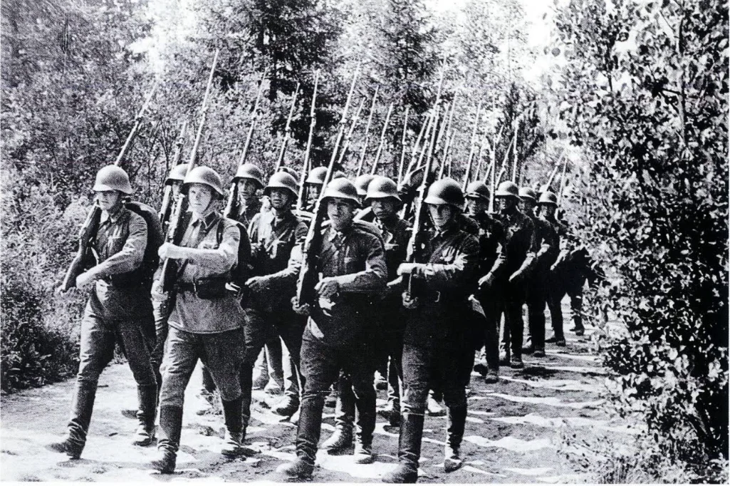 图2:苏军某步兵团跨过苏波边境。9月17日凌晨,红军出动白俄罗斯方面军和乌克兰方面军总共约46万人,兵分六路进入波兰,仅付出4500人伤亡的代价就“收复”了苏波战争后根据《里加条约》割让给波兰的西乌克兰和西白俄罗斯地区