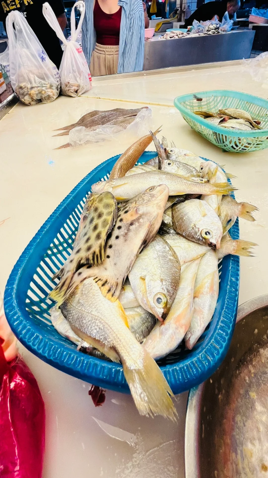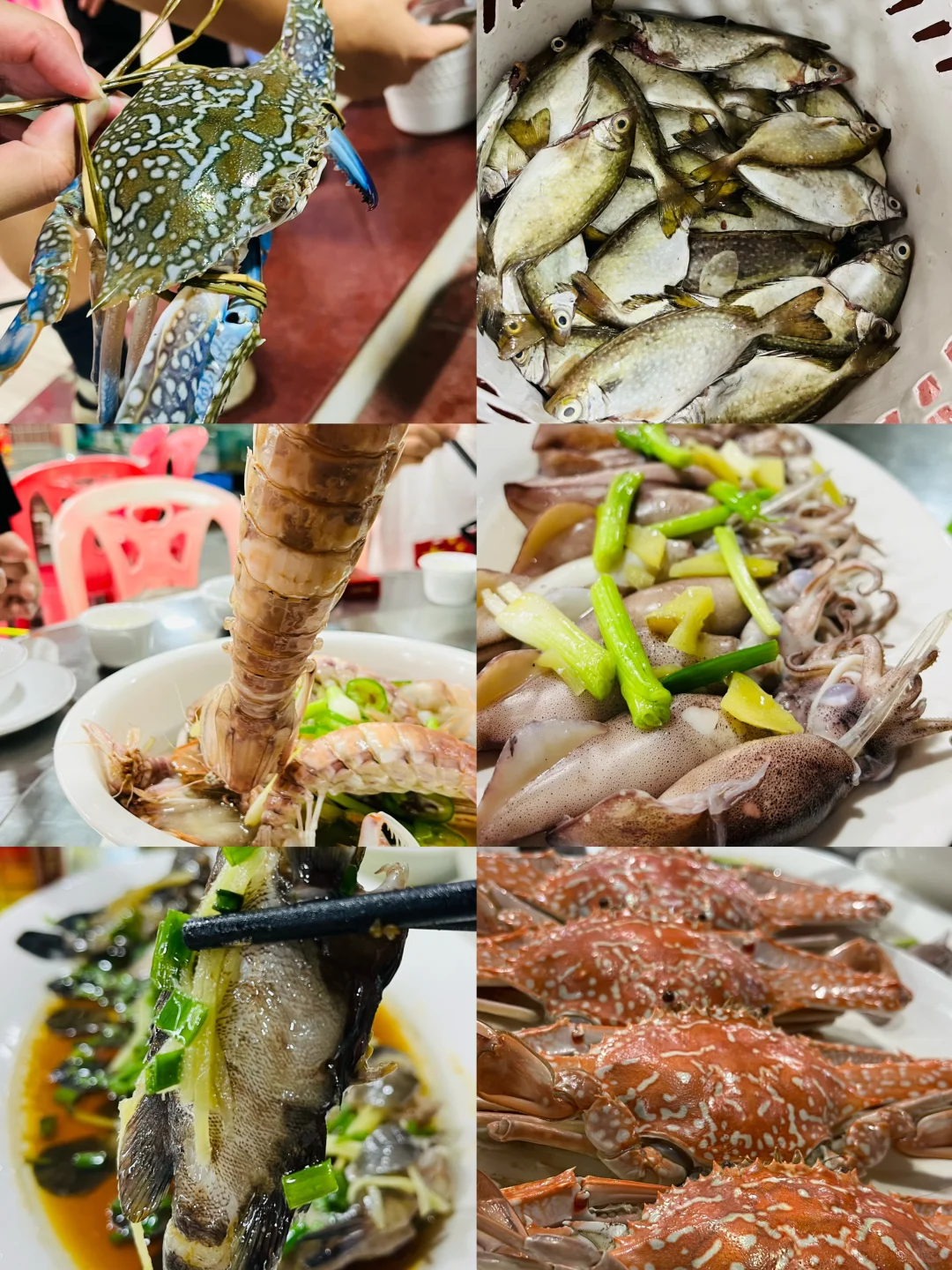 4、农贸市场买海鲜,这里海鲜非常便宜,可能是刚开鱼,手臂大的皮皮虾55元一斤,泥猛鱼10块一大萝(目测有4斤),生蚝,手掌大小,3块一斤,兰花蟹40一斤。所以去市场买海鲜真的不贵。