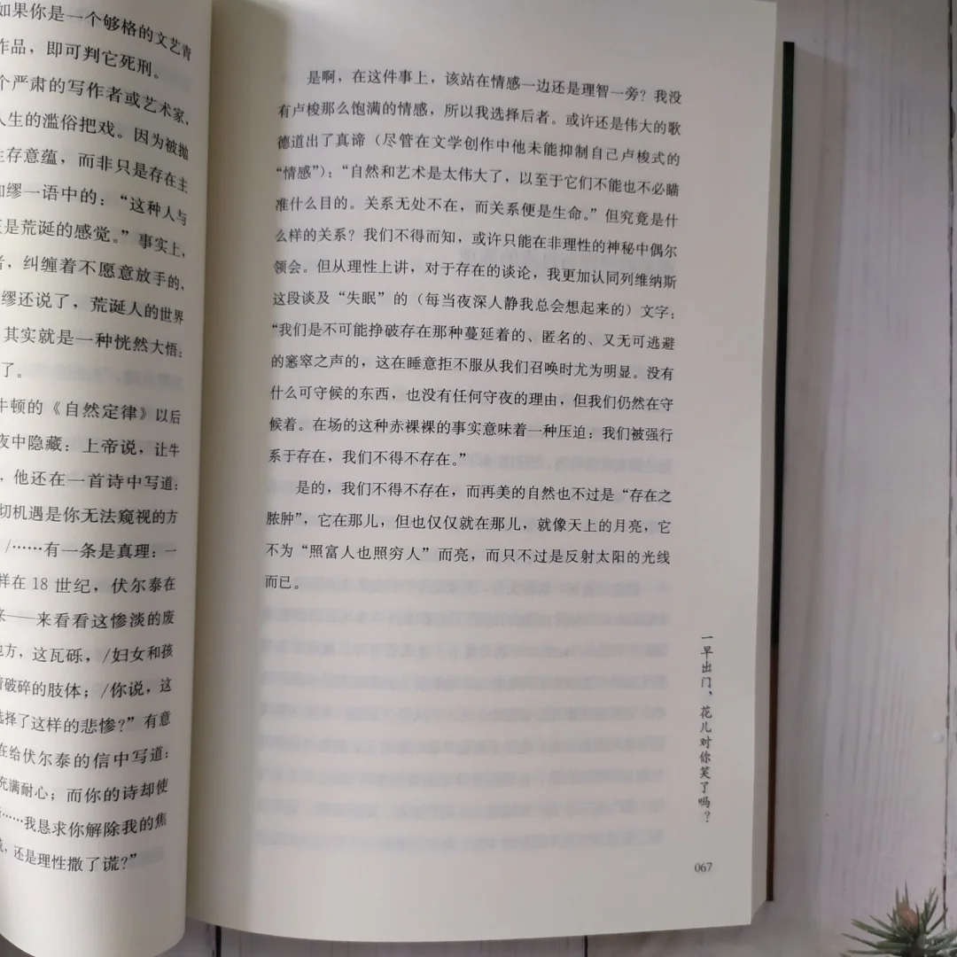 并不是所有的事情都需要有深远的意义才能值得去做。有时候,简单的乐趣、放松或读到一段让人心情愉悦的文字,就是一种价值,一种没办法,用世俗价值观来衡量的价值。《意义的浓汤与文学的筋腱》这一篇,作者列举了几个文学阅读中的事例,就是来讨论在文学阅读中,哪些在在章句中寻求意义和价值的不值!“当今的文学研究严重低估了我们的消化能力,要把他们都化成各种意义的农场,社会的,历史的,阶级的,权力的,资本的,文化的不一而足。可在这些意义的农场里,我们想捞点肉渣都捞不起来”,没错,比一切意义都更重要的就是这些“筋腱”!读《叶公好龙》,非要总结一句“是叶公非好龙也,好夫似龙非龙者也”。着实“意义”不大。卡夫卡的一个超微篇《绿龙的造访》,一个胖滚滚,没手没脚,肚皮儿差点磨破的龙,就是让人觉得可爱,作者说这是他读过的最美丽的故事。艾略特最著名的《荒原》即使没有搞懂它的意义,但是对它也有深刻的记忆。它其中的一句,已经足够惊艳到让作者爆上一句粗口!鲁迅作品中的一个“晚安”,非要指出的象征什么什么黑暗,反映人们的麻木,也着实无此必要。作者说“对不起,别给我讲什么黄疸和象征,要讲好故事,还是得遵循故事本身的逻辑”。
