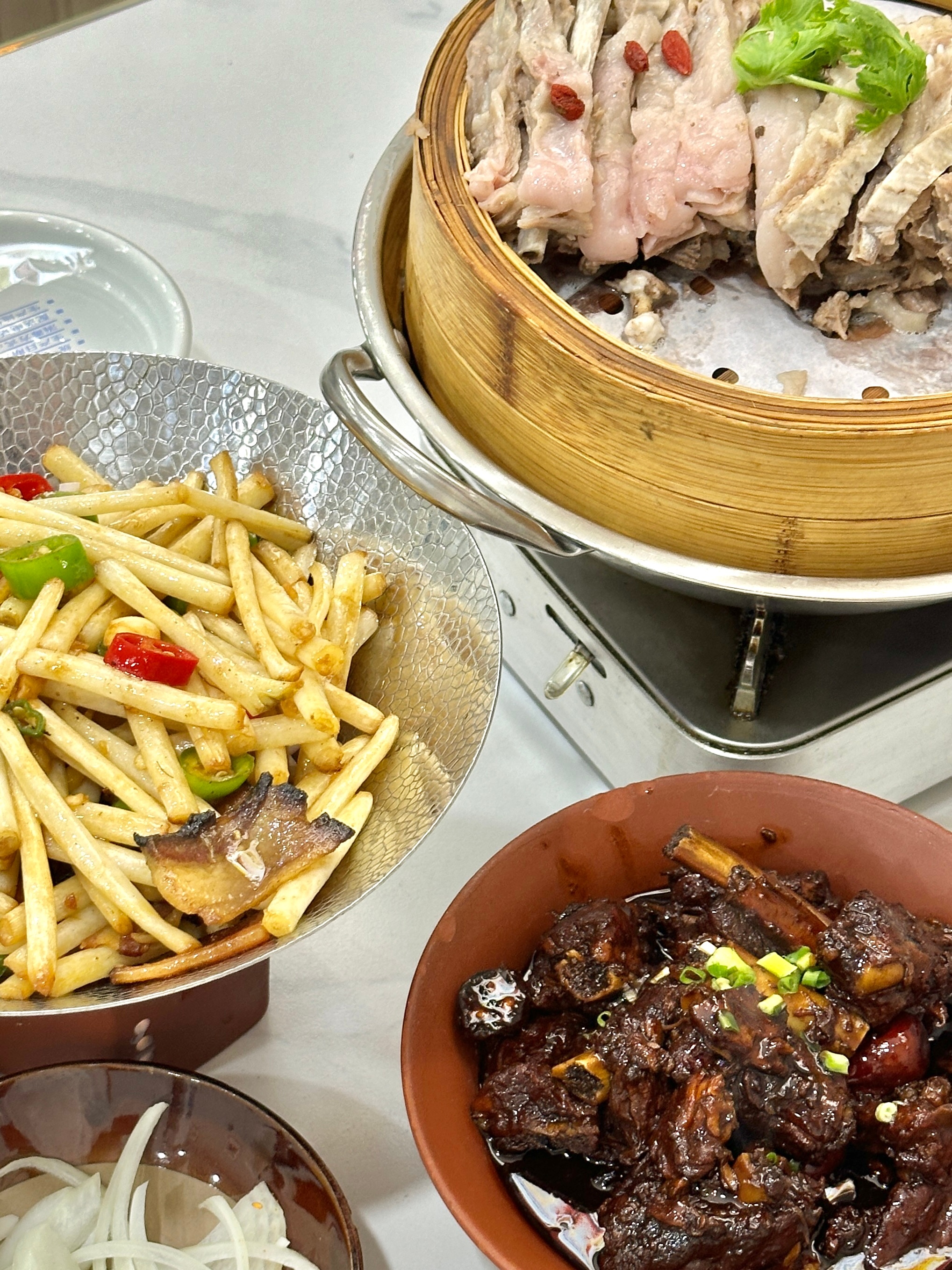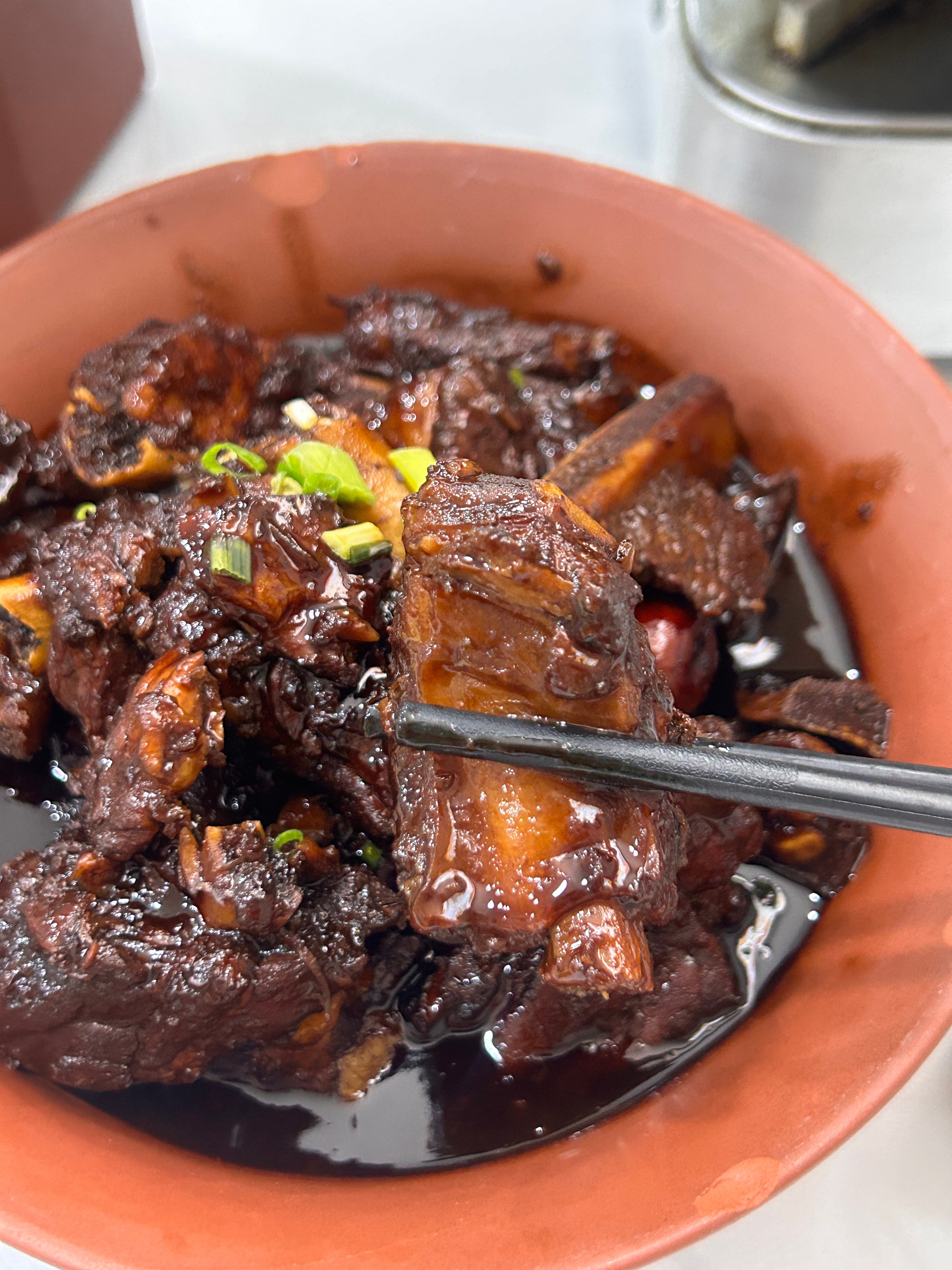 吃到浓油赤酱的排骨😍还有肥糯的羊肉!那个菜菜叫花生芽,可以想象成是有花生味道的藕带。