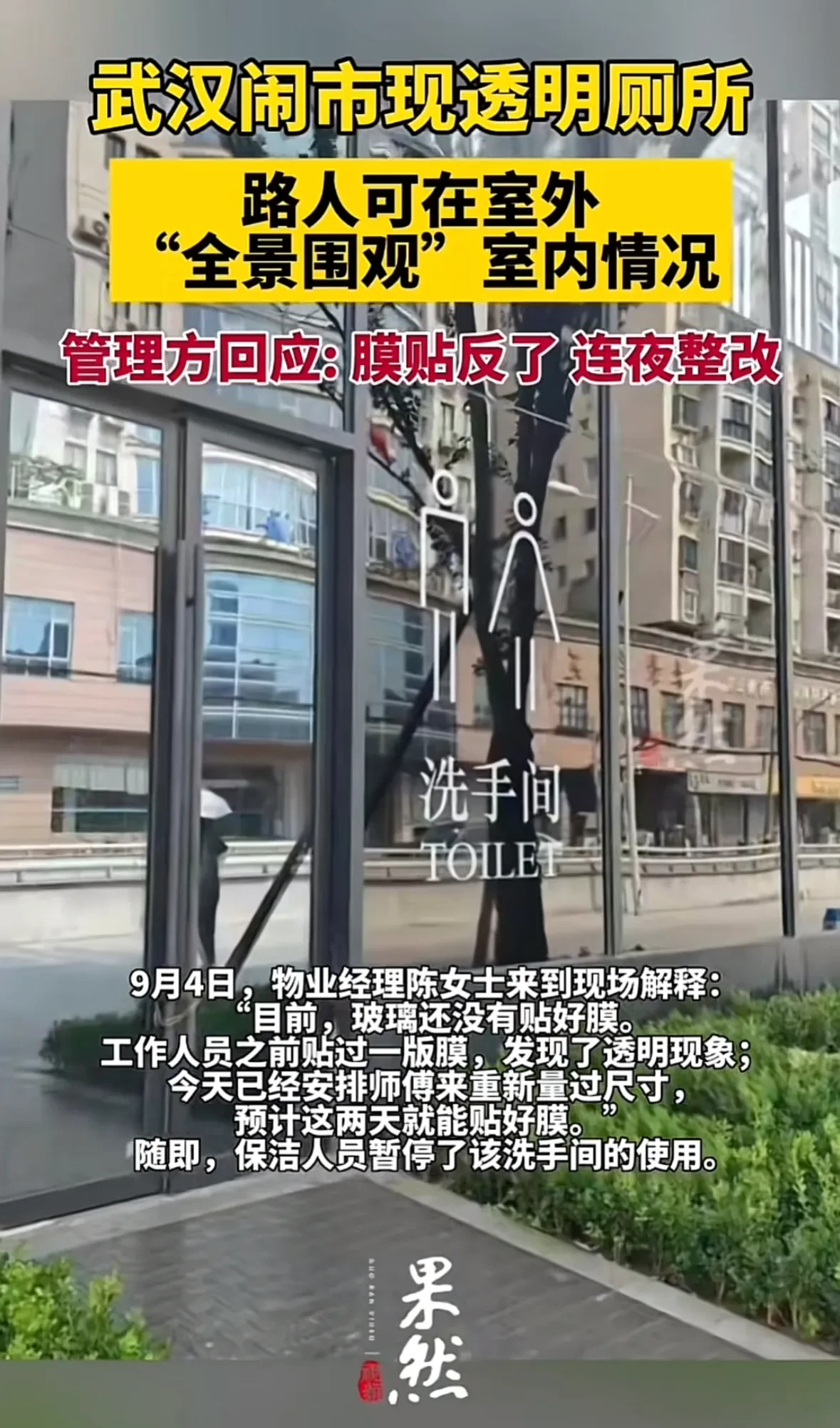 武汉闹市出现透明厕所,路人可以全景围观