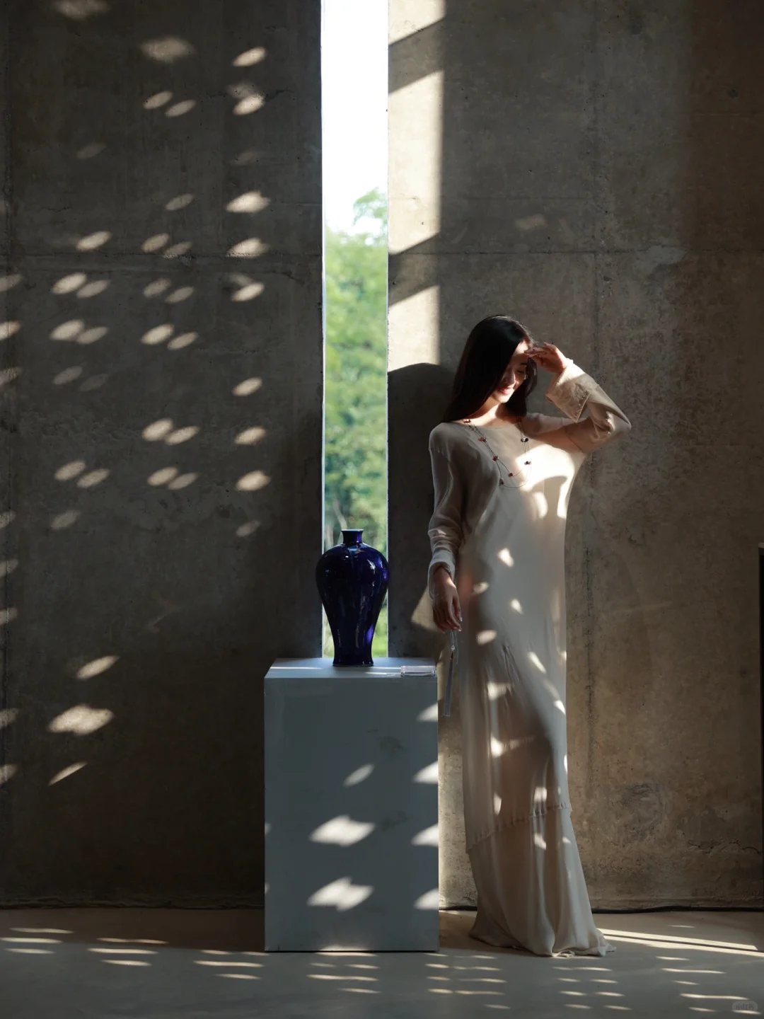 白衫是薄瓷的容器盛着心跳与呼吸绿裤是柔韧的藤缠裹着骨骼的倔强~柳丝拂