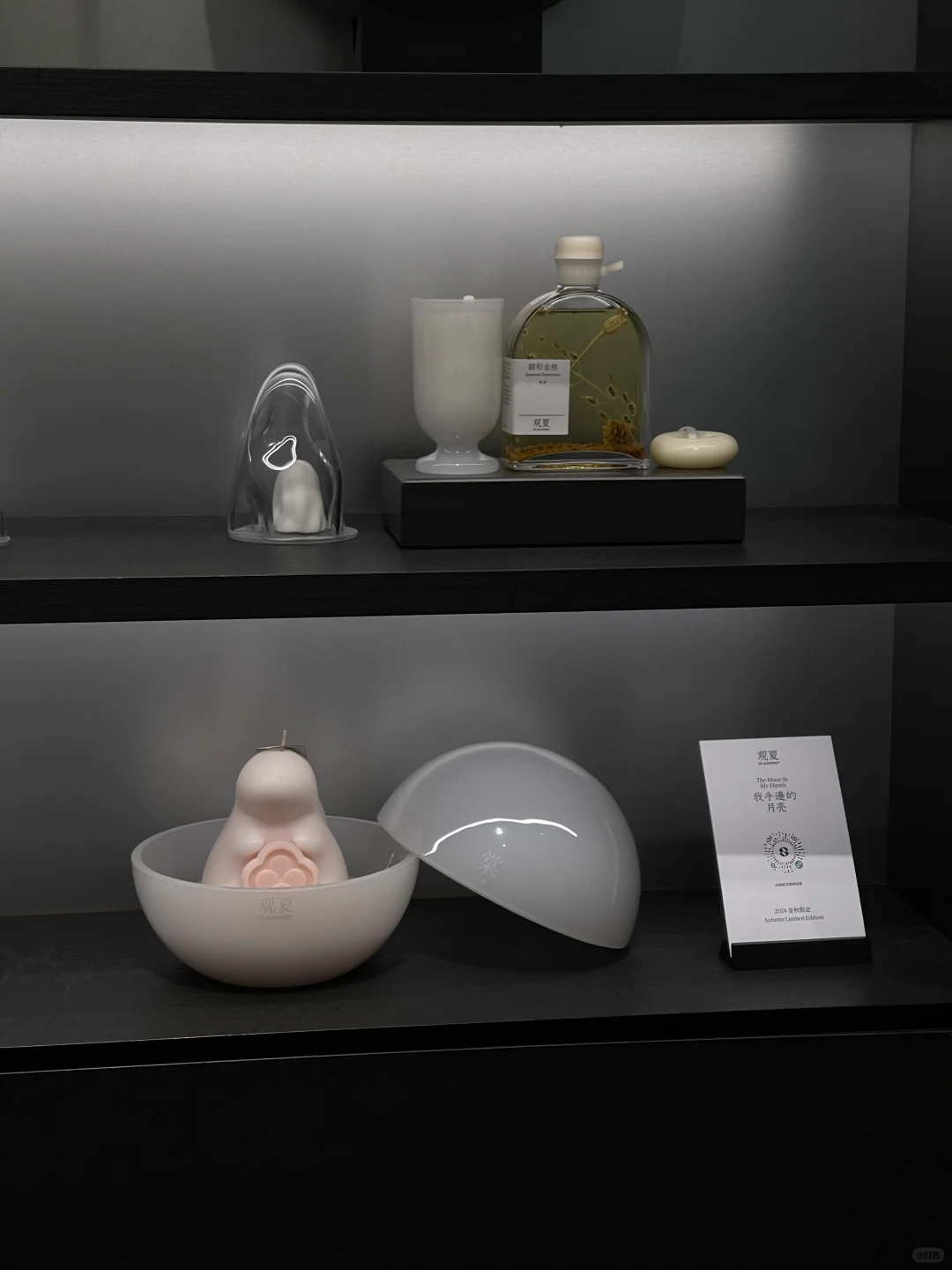 炎热夏末 闷热的阳光打在头顶 到人民公园休息小坐一会儿. 走着走着 又到观夏 扑鼻而来的淡雅气味 还有店内中秋陈设 放佛将思绪一下拉回以前. 今年观夏以“我手边的月亮” 寄以中秋佳节的浪漫情意. 每个人的心中,都有属于自己的一轮月亮🌛 或投身跳跃的美好.或感受当下的心境. 它虽然在天上,但它从来都在我们手边.