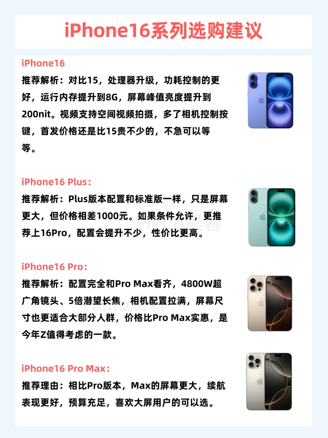 推荐解析:Plus版本配置和标准版一样,只是屏幕更大,但价格相差1000元。如果条件允许,更推荐上16Pro。