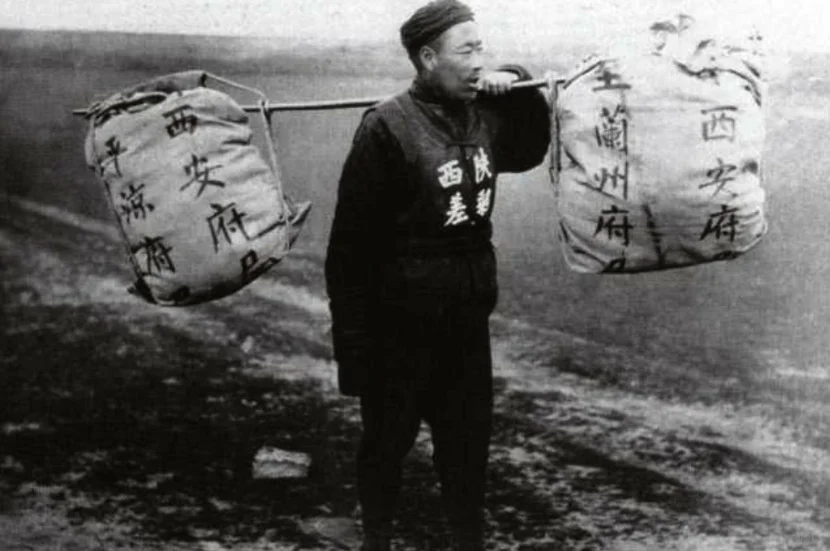 由于交通原因,民国时期很多地方的信件都需要靠邮差人力送到,图为当时穿着很有地方色彩的陕西邮差