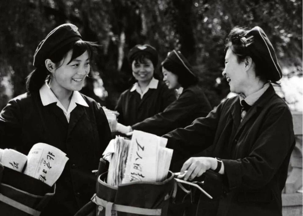 投身到邮递员行业中的女邮递员成为邮路上亮丽的风景,图为1979年北京朝阳区呼家楼邮电局的女邮递员
