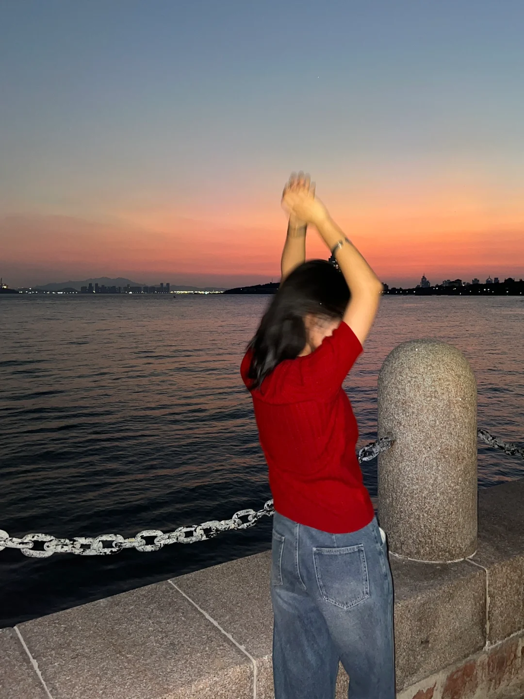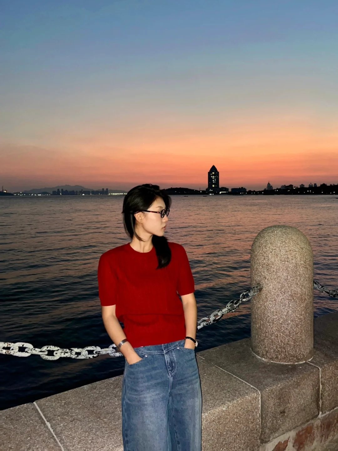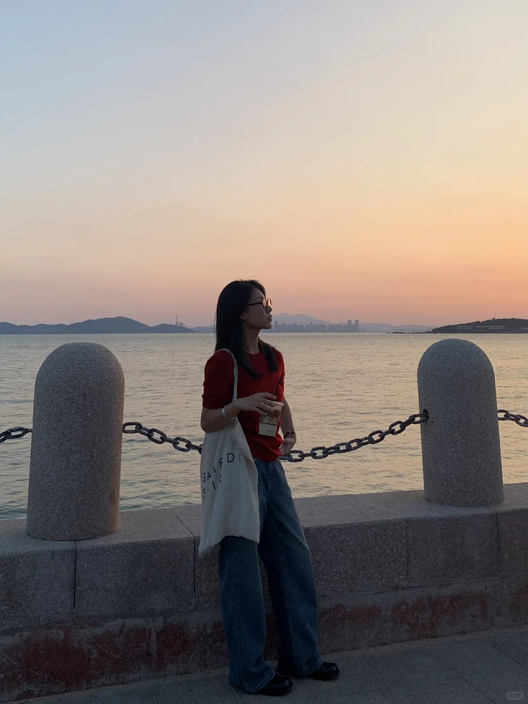 初秋的天气很舒服 基本每天都有绝美日落 在躺椅上喝着小酒看日落吹海风 是青岛人民特有的松弛感 -