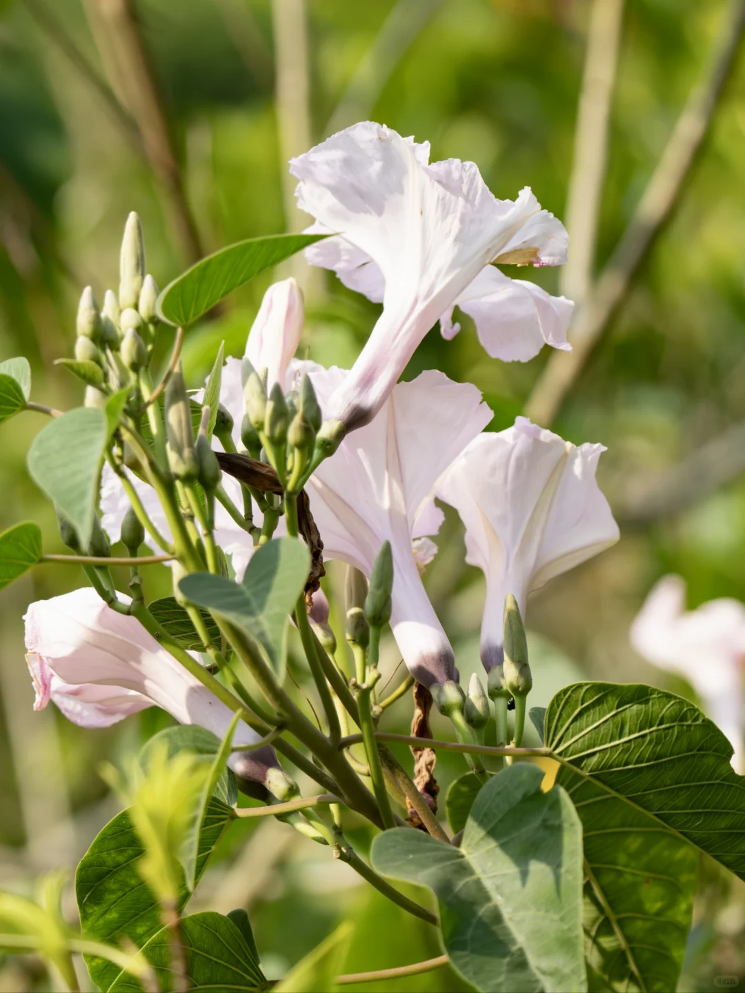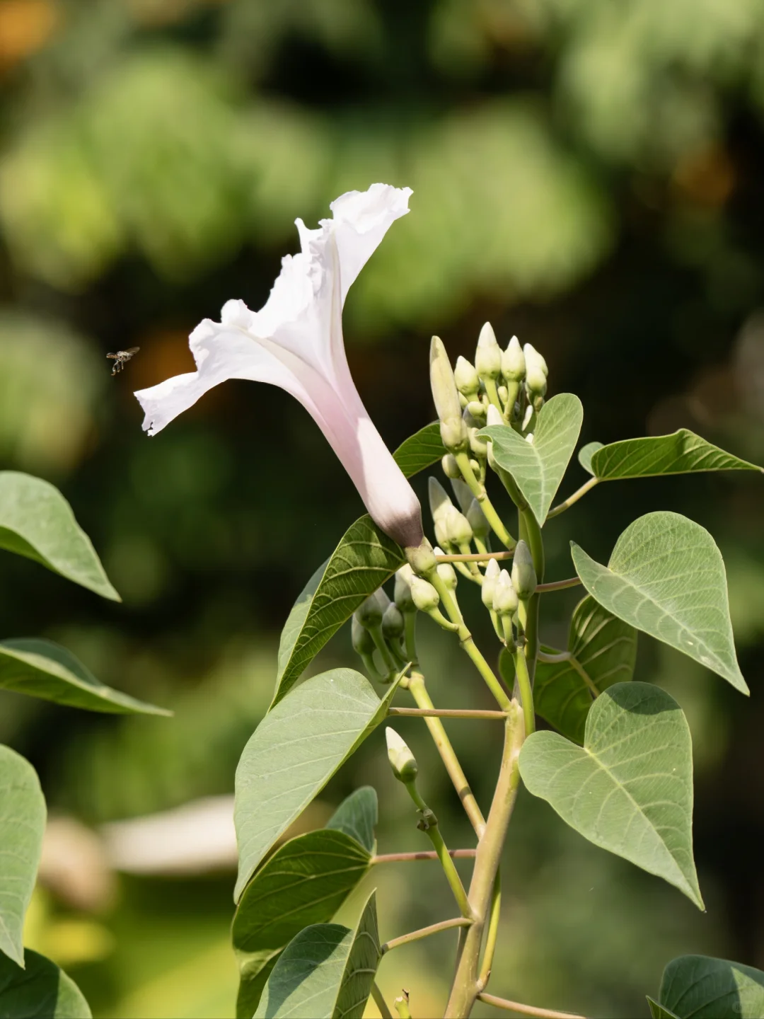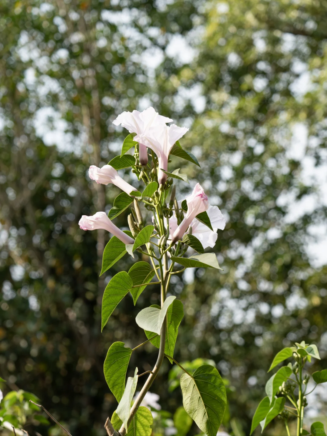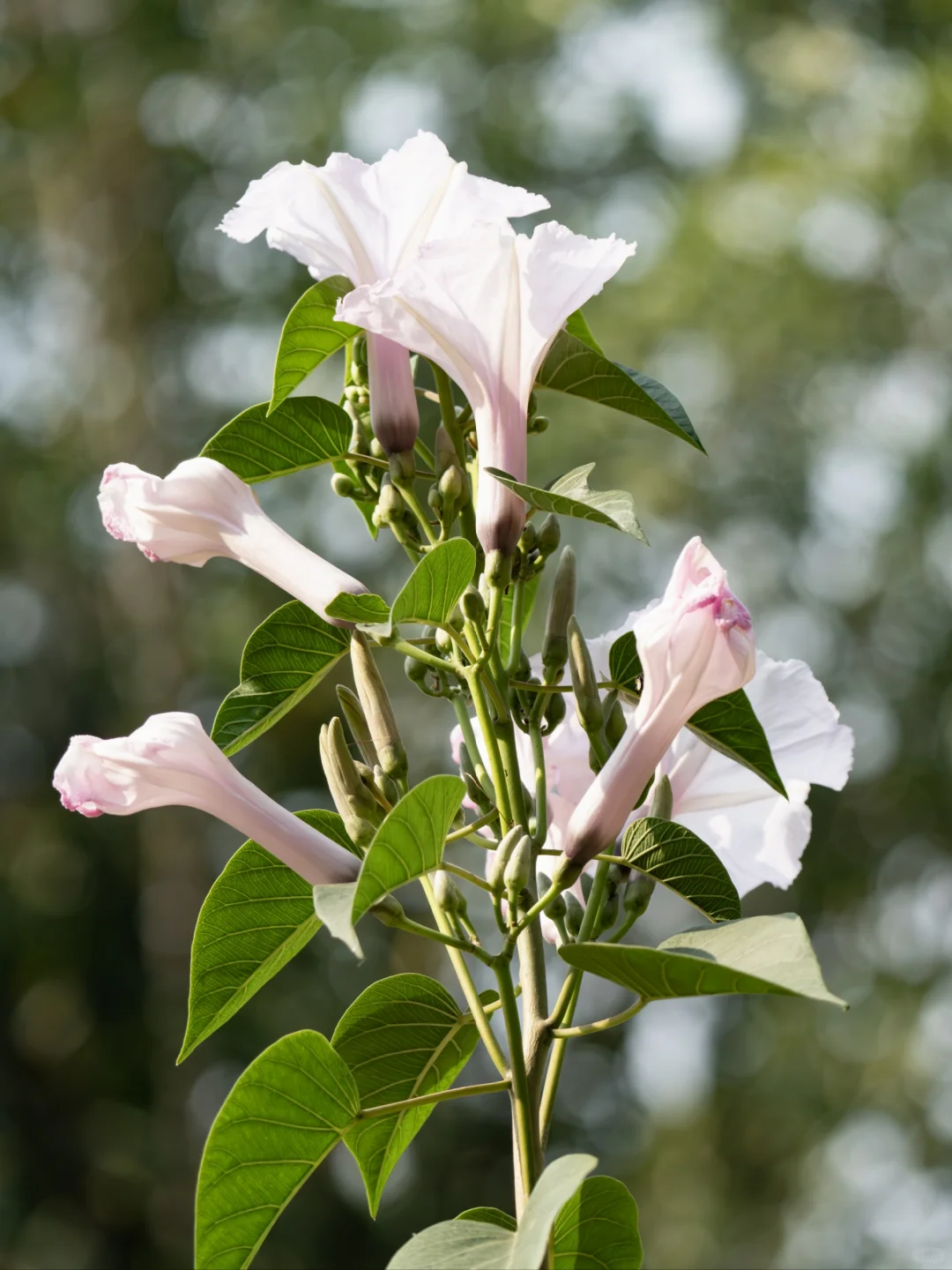 在西双版纳的植物园里,我邂逅了一种美丽的奇迹——树牵牛。与常见的牵牛花不同,它不攀爬藤架,而是生长在树上,宛若仙子从绿叶间探出。春至秋,树牵牛的花朵次第绽放,淡紫色或粉色的花瓣如铃铛般点缀枝头,柔美而灵动。