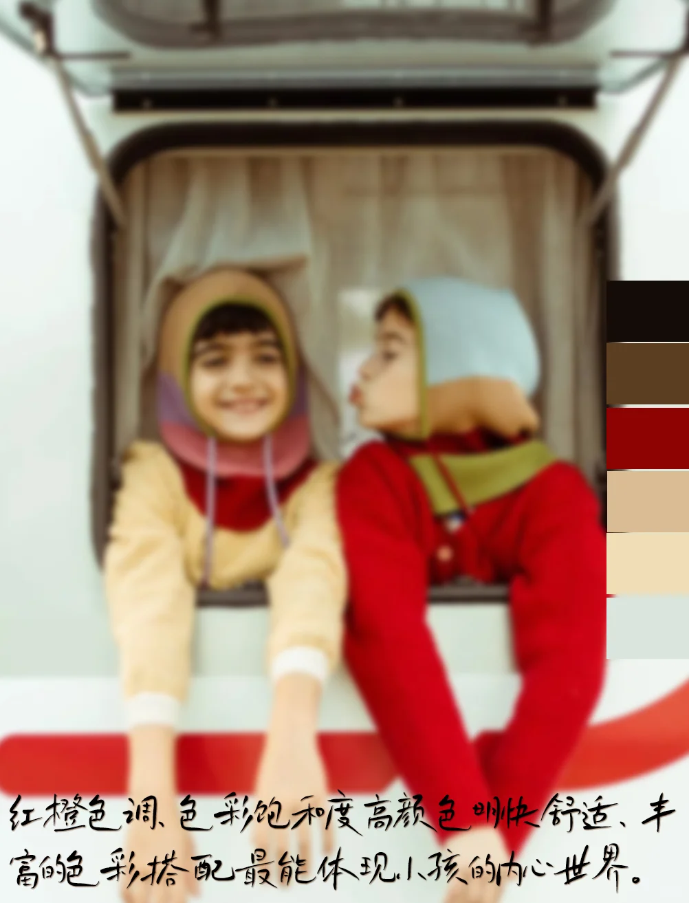 [四R]色彩:红橙色调,暖色,色彩饱和度高颜色明快舒适,丰富的色彩搭配最能体现小孩的内心世界。