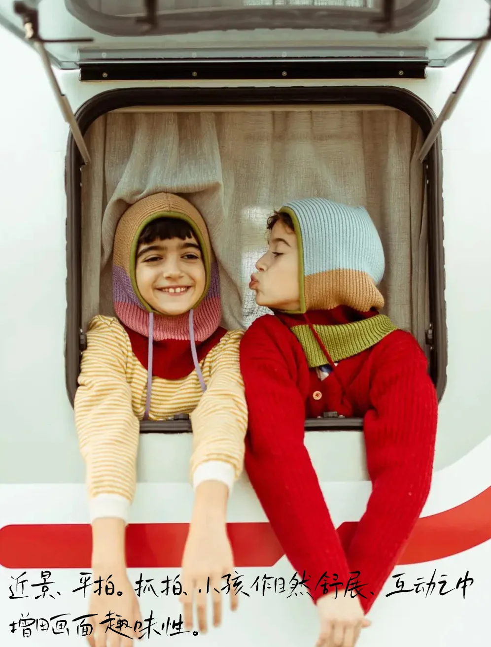 [五R]拍摄:近景,平拍。抓拍,小孩作自然舒展,互动之中增田画面趣味性。