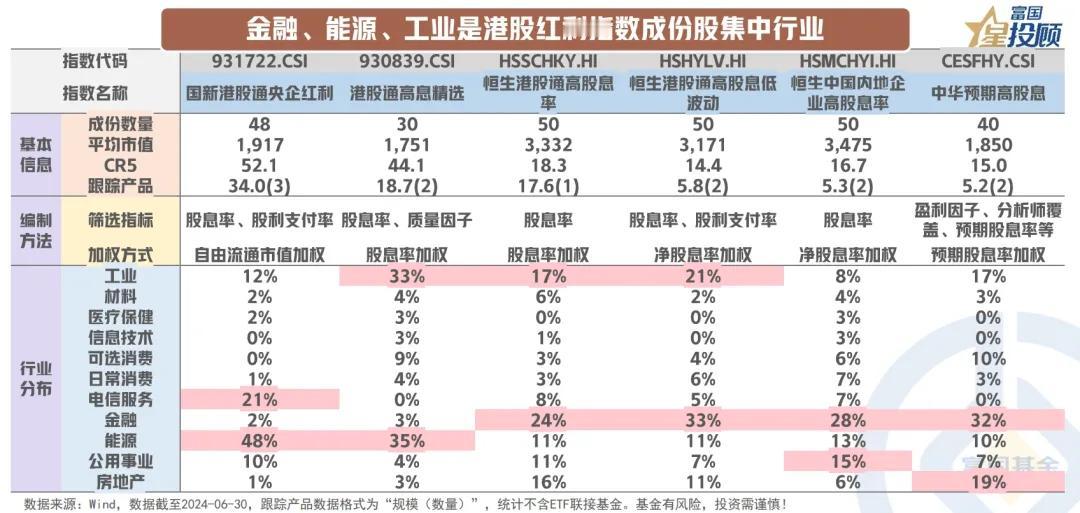 #基金投顾# 【星图说】11幅图,玩转红利指数投资!(六) 港股红利指数平均市值、个股集中度相较A股红利指数更高,反映其个股自由流通市值、股息率差异更大。港股红利指数在金融、能源、工业等行业权重较高,指数行业配置的不同一定程度上可解释其收益的巨大差异,如在房地产行业配置权重较低的国新港股通央企红利、港股通高息精选指数近五年年化收益率较高,而重仓地产行业的中华预期高股息、恒生港股通高股息率指数则受地产行业下行影响明显。 (市场有风险,投资需谨慎)