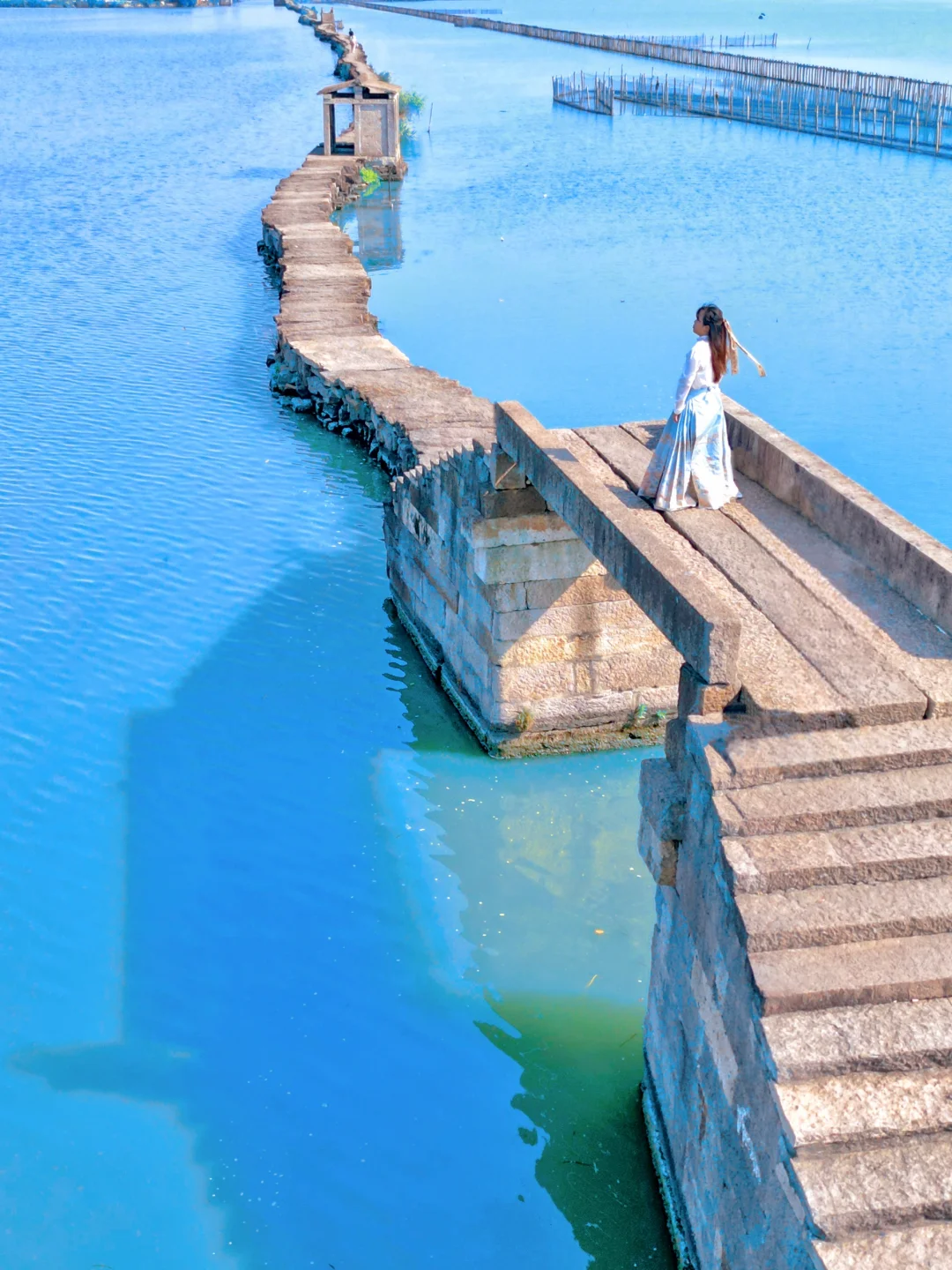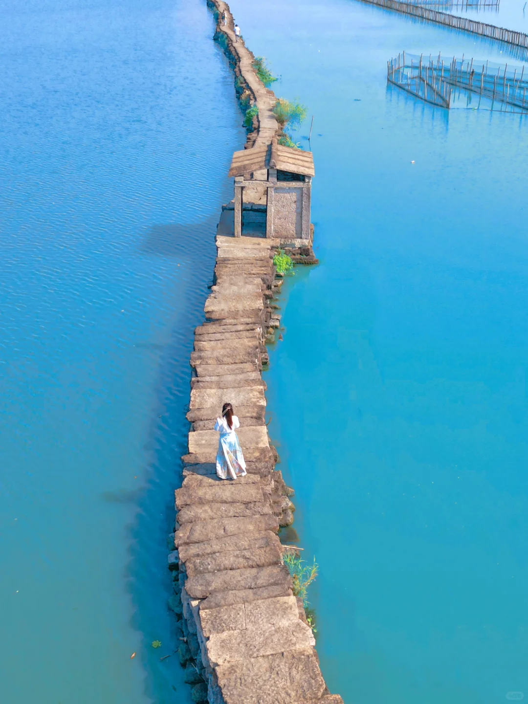 6️⃣昂桑湖:离市区很远离绍兴北站比较近,一条链接两岸的古纤道很有特色,需要无人机才能拍得出效果,不建议特地去。