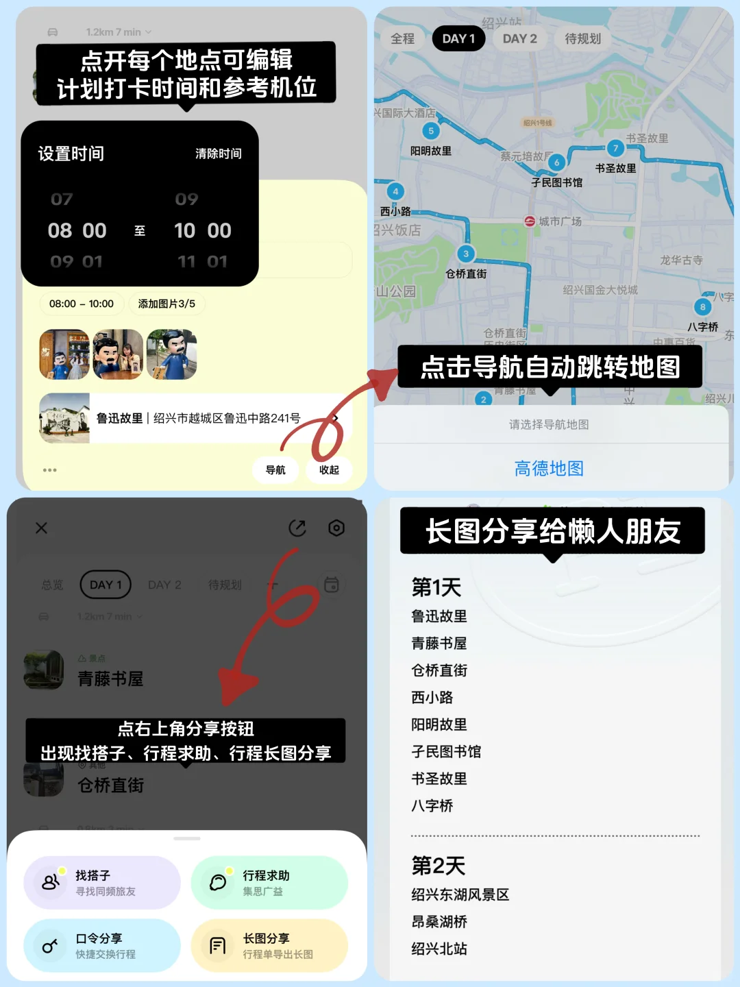 day1:鲁迅故里-青藤书屋-仓桥直街-西小路-阳明故里-孑民图书馆-书圣故里-八字桥