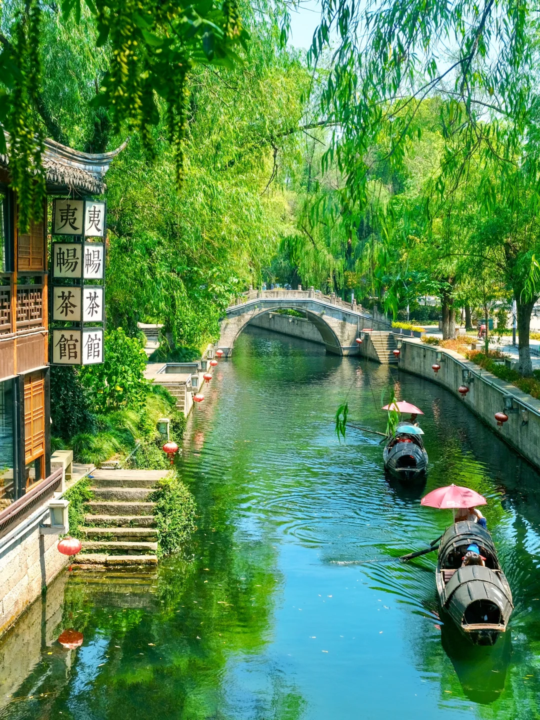 2️⃣仓桥直街:走在石板路上看着湖上来来往往的乌篷船,这不就是江南水乡嘛~