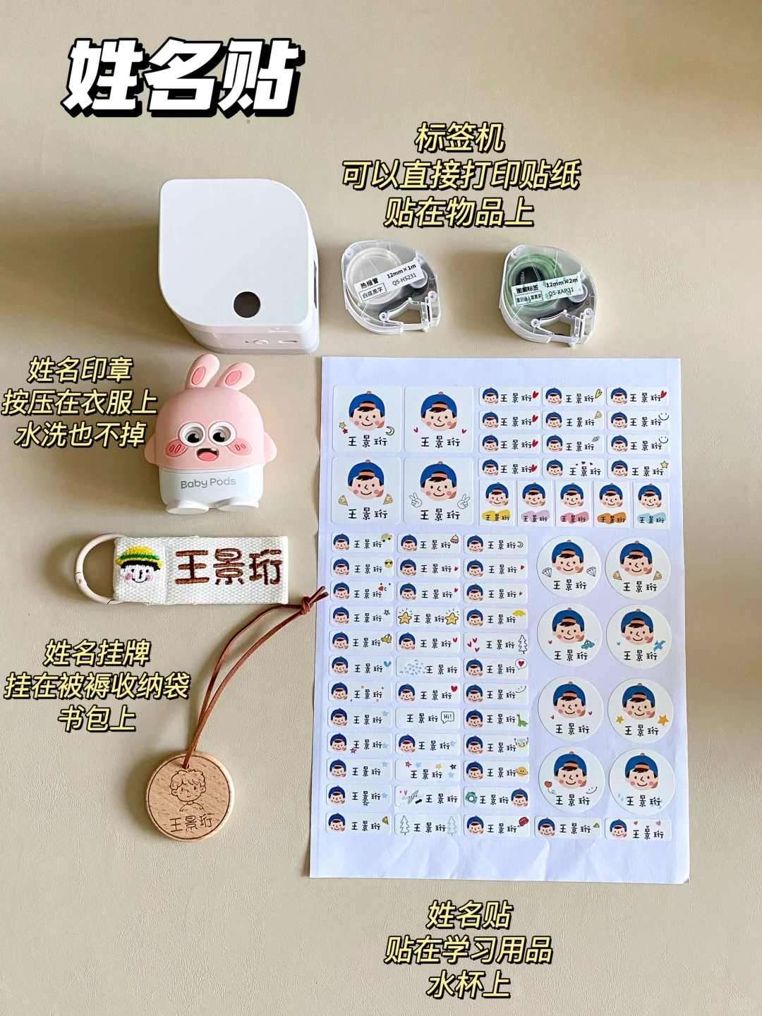 标签机:可以打印贴纸,贴在宝宝的用品上,方便老师辨认
