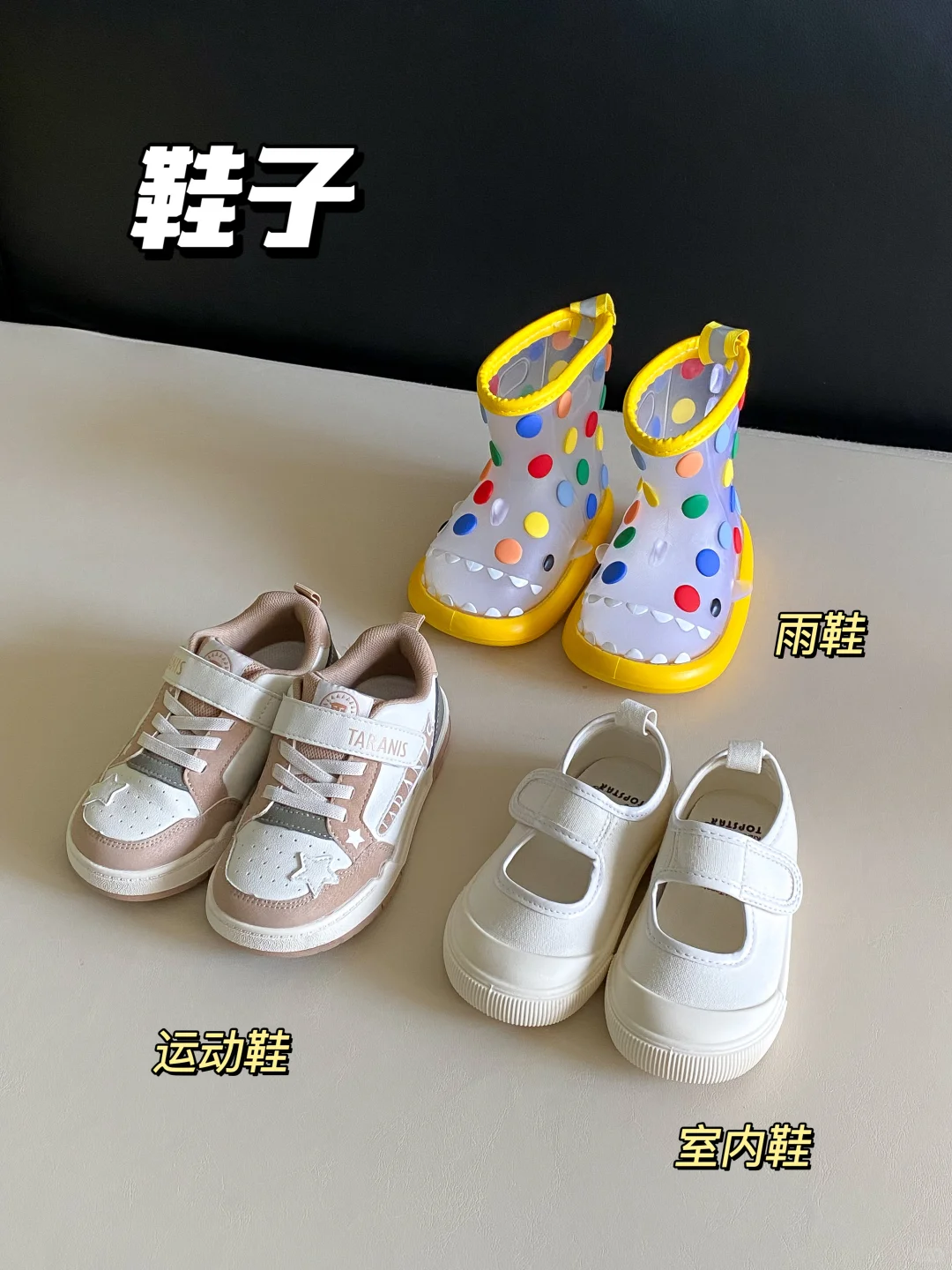 准备了雨鞋、室内鞋、运动鞋,都是方便穿脱的
