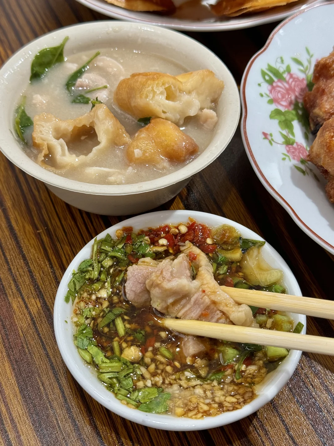 终于找到了正宗的 和我在顺德吃过的不相上下!! 猪杂粥加上油条、蘸料后真的好香 干蒸排骨口感真的不错 嫩嫩滑滑 还有虾饼、脆皮大肠也都好吃 真的是可以5刷的小店🤤 -