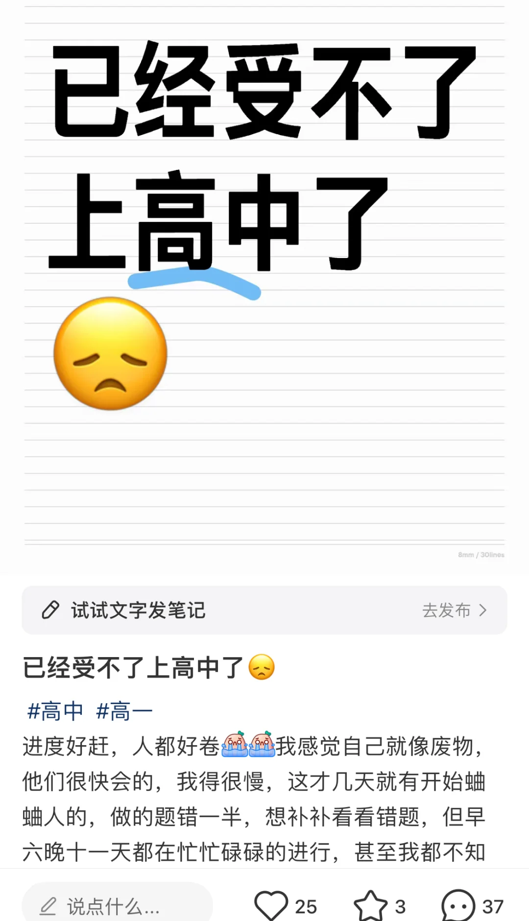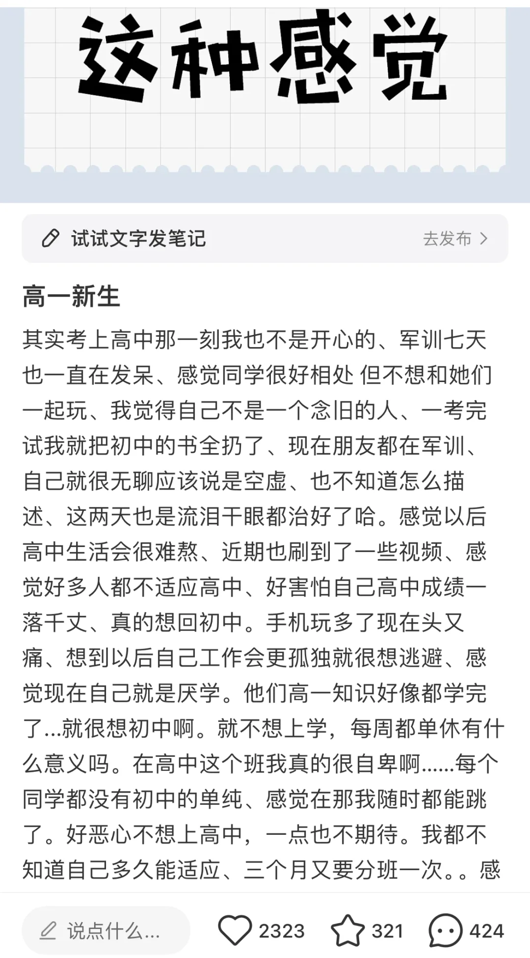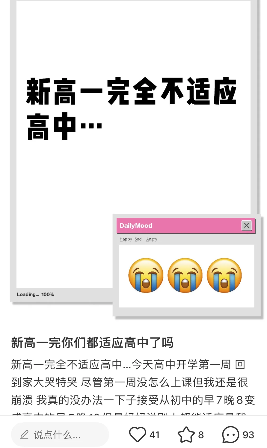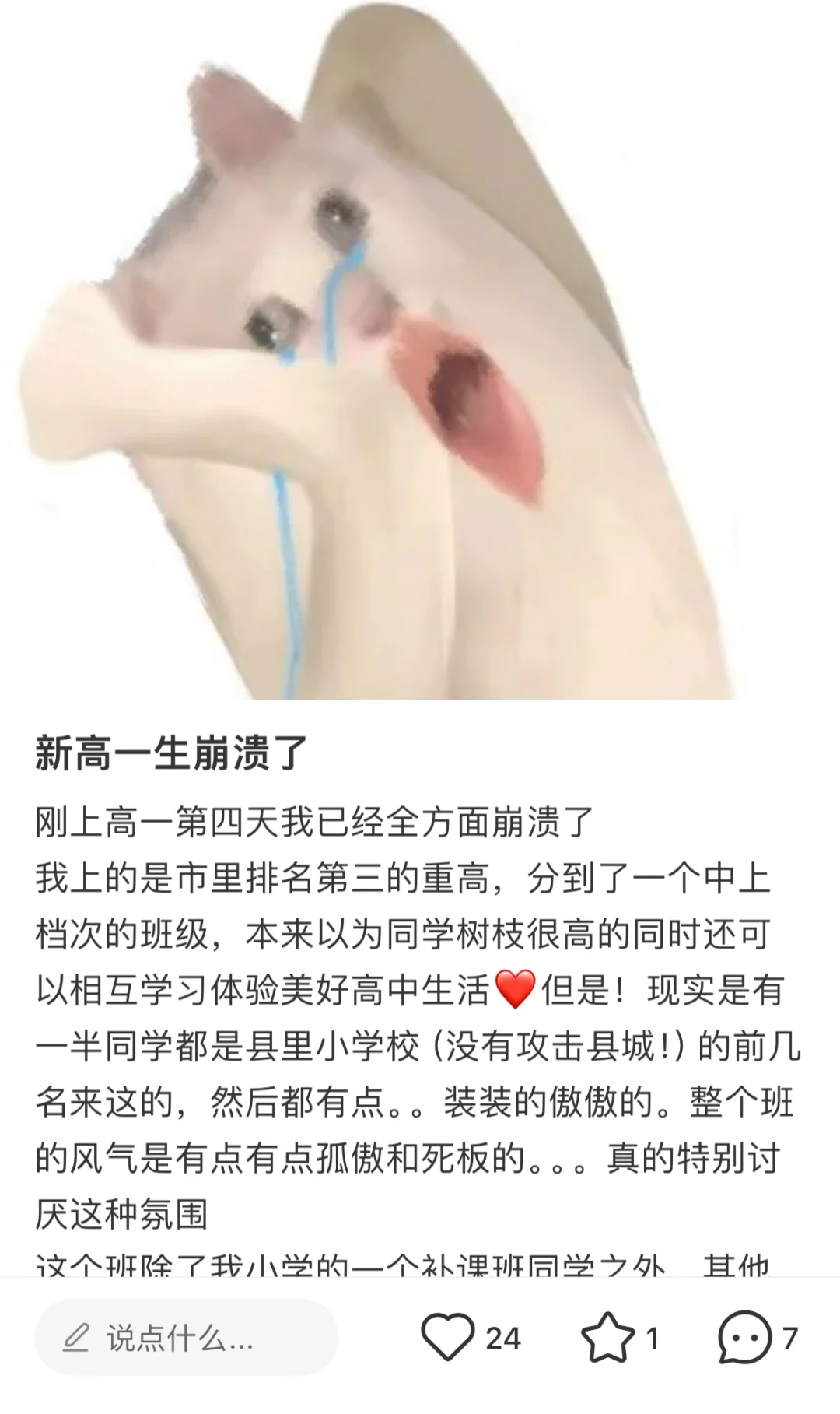看看我在上刷到的新高一孩子们的崩溃呐喊!多少孩子到了新高一不适应。陌生的环境,紧张的节奏,大量的作业,匮乏的睡眠,紧绷的神经,天啊,这才刚开始,很难想象她们怎么坚持到高考。[哭惹R]