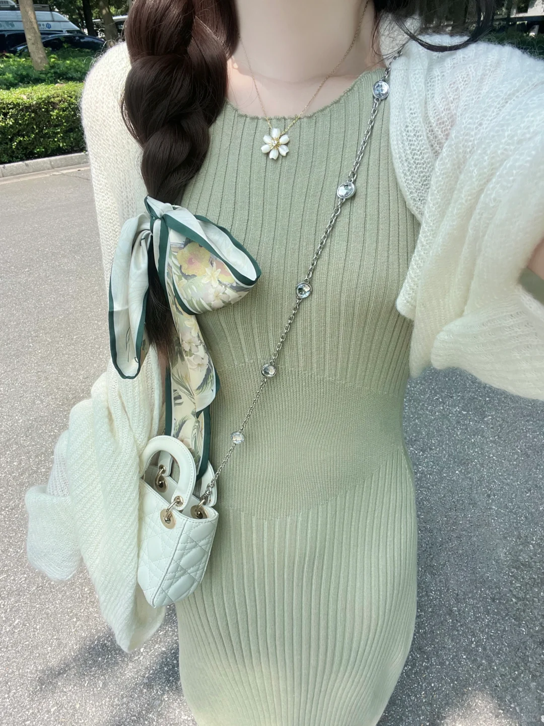选主图纠结了半个小时……🥹 这个颜色真的太温柔了! 饱和度比较低的绿色很显白啊啊啊 现在套个针织开衫在办公室气温刚好 秋天搭个外套就OK了!