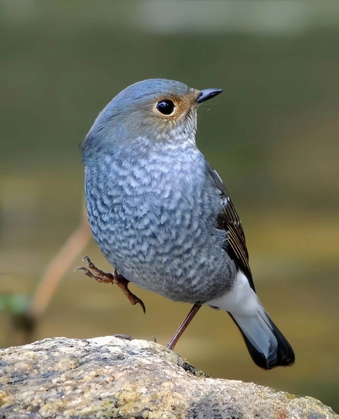 🍀形态特征:红尾水鸲雄鸟主体均为暗灰蓝色,额基和眼先深灰黑色;翼暗褐色,外翈羽缘蓝灰色;虹膜褐色,喙黑色,脚肉褐色至黑褐色。雌鸟上体为略泛蓝的暗灰褐色,眼先和眼周略沾棕色;翼深褐色具淡色羽缘;尾上覆羽白色,尾羽基部亦为白色,端部深褐色;下体蓝灰色,具细密的灰白色斑点;尾下覆羽白色;脚肉褐色。