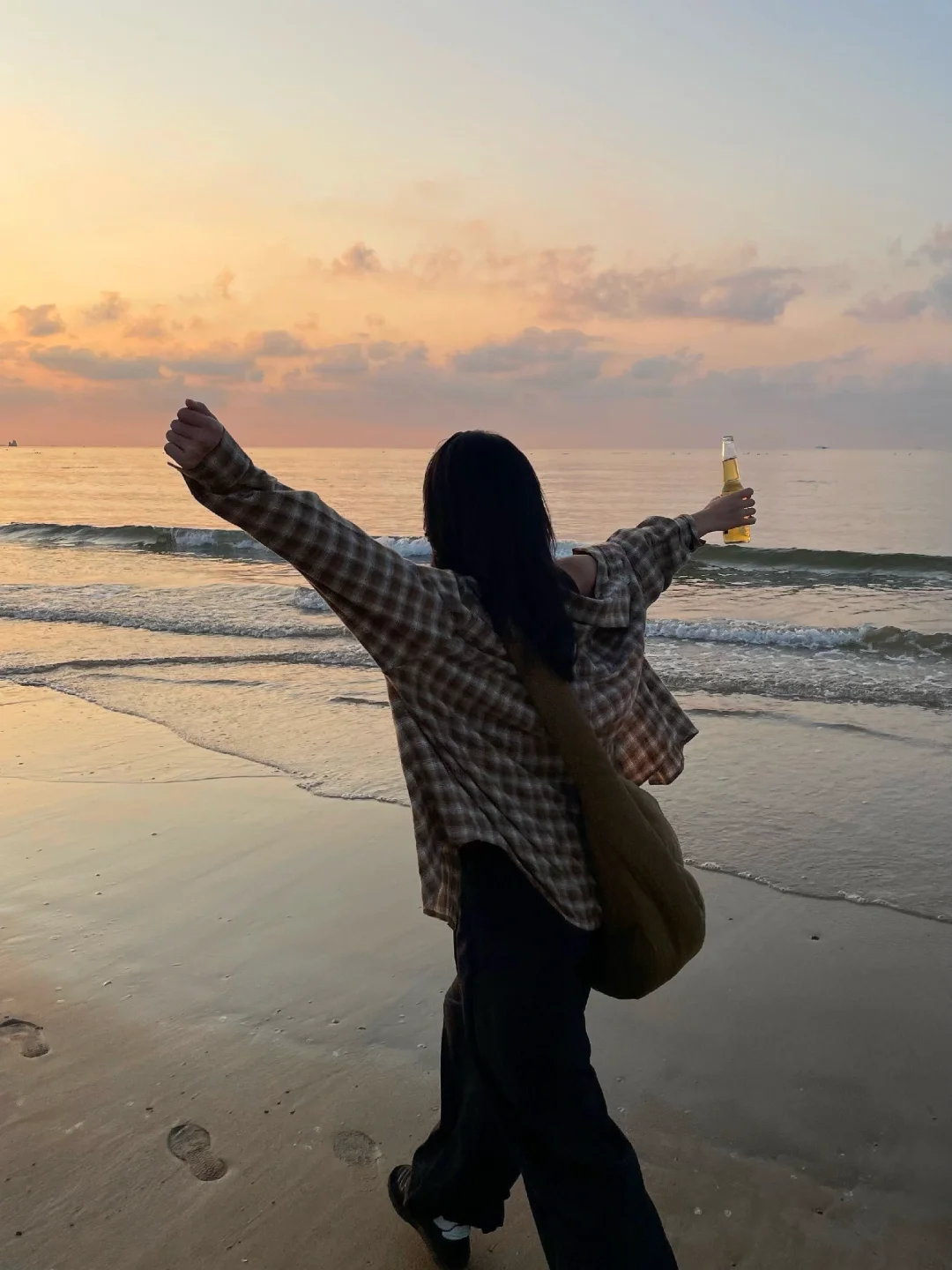 突发奇想去看一场秋天的日出 于是和朋友说走就走 在凌晨的海边 风和自由会浇灌我的灵魂 -