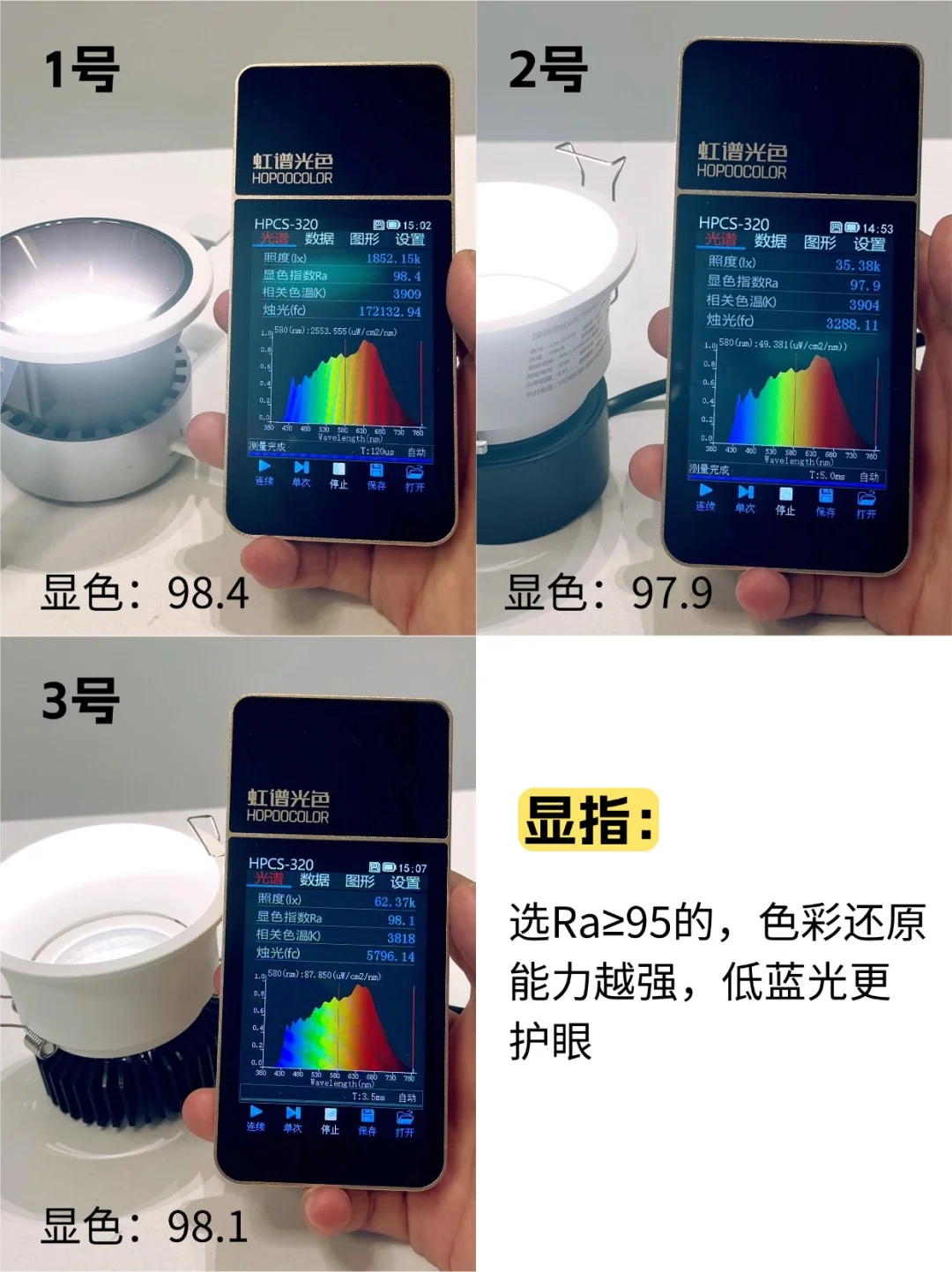 选Ra>95的,色彩还原能力越强,低蓝光更护眼!相比之下3款表现都提供不错的!