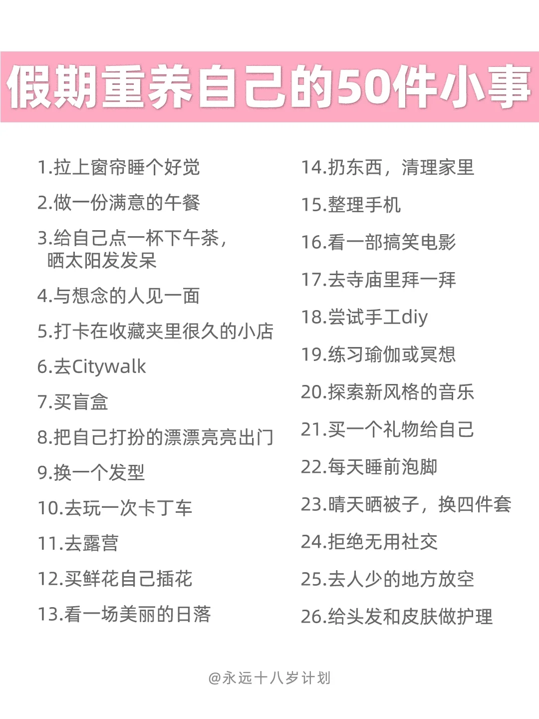 永远十八岁假期重养自己的50件小事