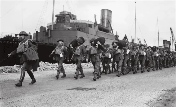图7:1939年9月16日,英国远征军(BEF)第9野战旅B炮兵连正在法国瑟堡登陆。由于要防范空袭和潜艇攻击,加上车辆等设备的数量增多,英国远征军运输速度缓慢,直到10月中旬在法国的英军才达到4个步兵师和两个坦克旅的规模,此时波兰战役早已结束