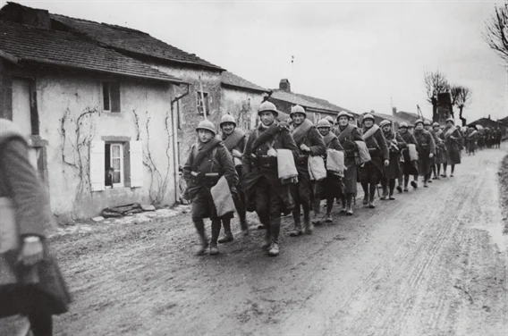 图4:1939年12月9日,一支法国部队正穿过村庄向西线进发。波兰战役爆发后,法国第3、第4和第5集团军的9个师,攻入德国西部,推进到齐格飞防线,但法军最远也只深入了德国领土11公里左右就随着波兰战役的结束而撤回国境线