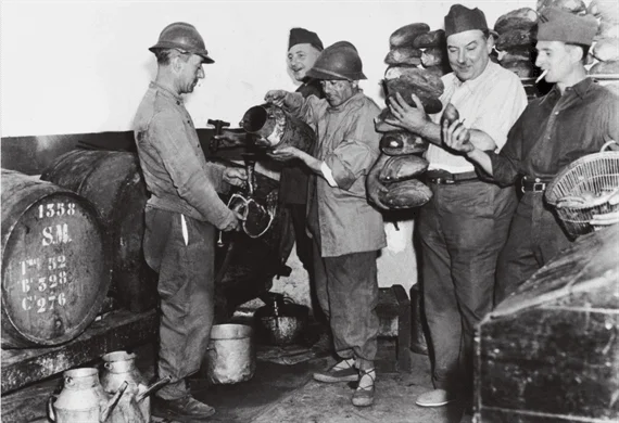 图3:1939年9月,法国士兵收到配发的面包和葡萄酒。此时,波兰战争已经爆发,英法也于9月3日相继对德宣战,然而西线的两国军队“却躲在钢筋水泥工事背后静静地坐着,眼看着一个唐·吉诃德式的英勇的盟国被人消灭了”