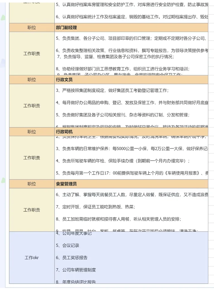行政部分有很多岗位,明确岗位工作范围对找工作或者晋升有好处 1⃣️行政专员 2⃣️行政前台 3⃣️行政文员 4⃣️行政部门经理 5⃣️行政主管 6⃣️行政司机 7⃣️档案管理员 8⃣️食堂管理员 大家可以参考一下哦