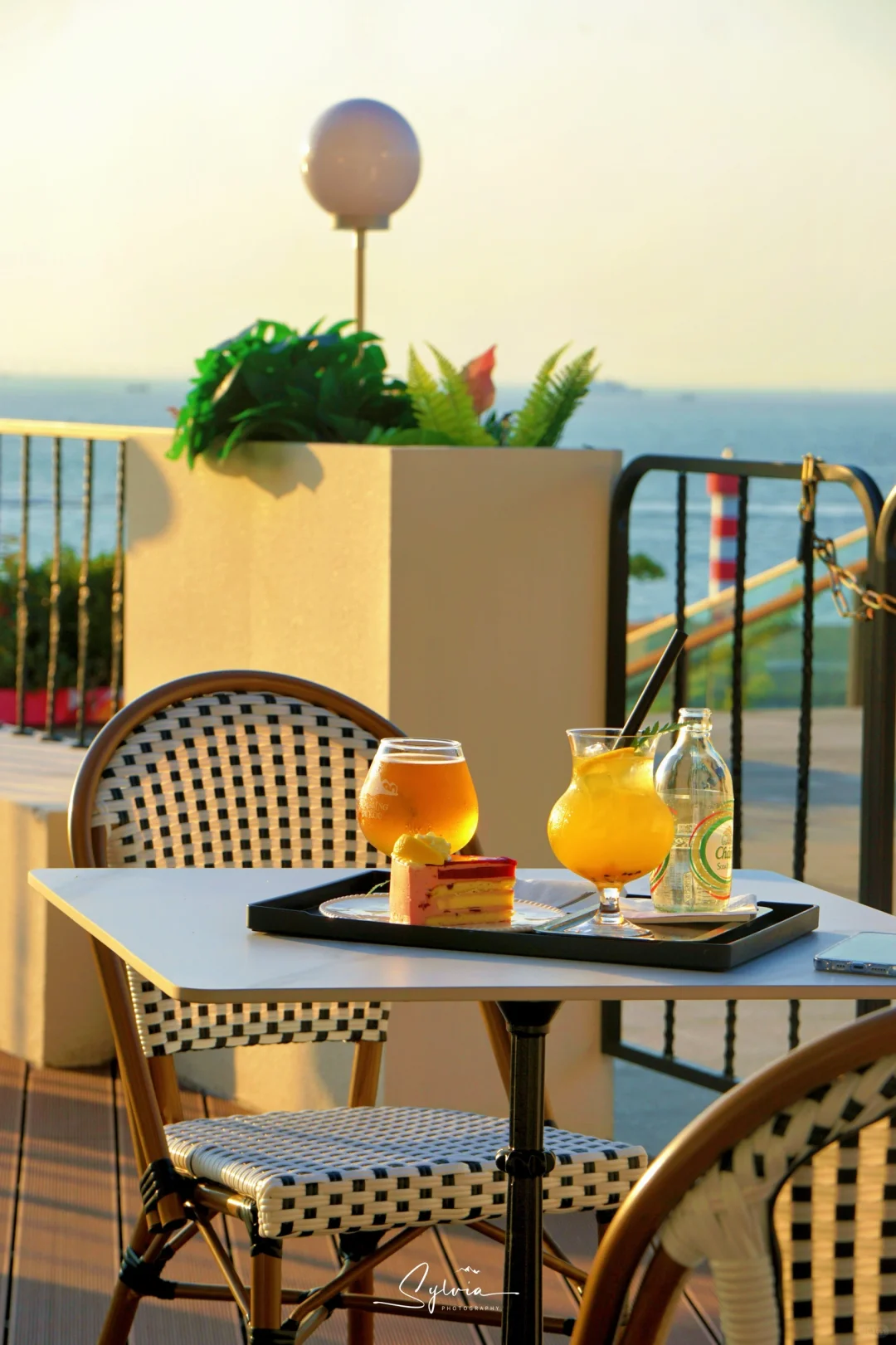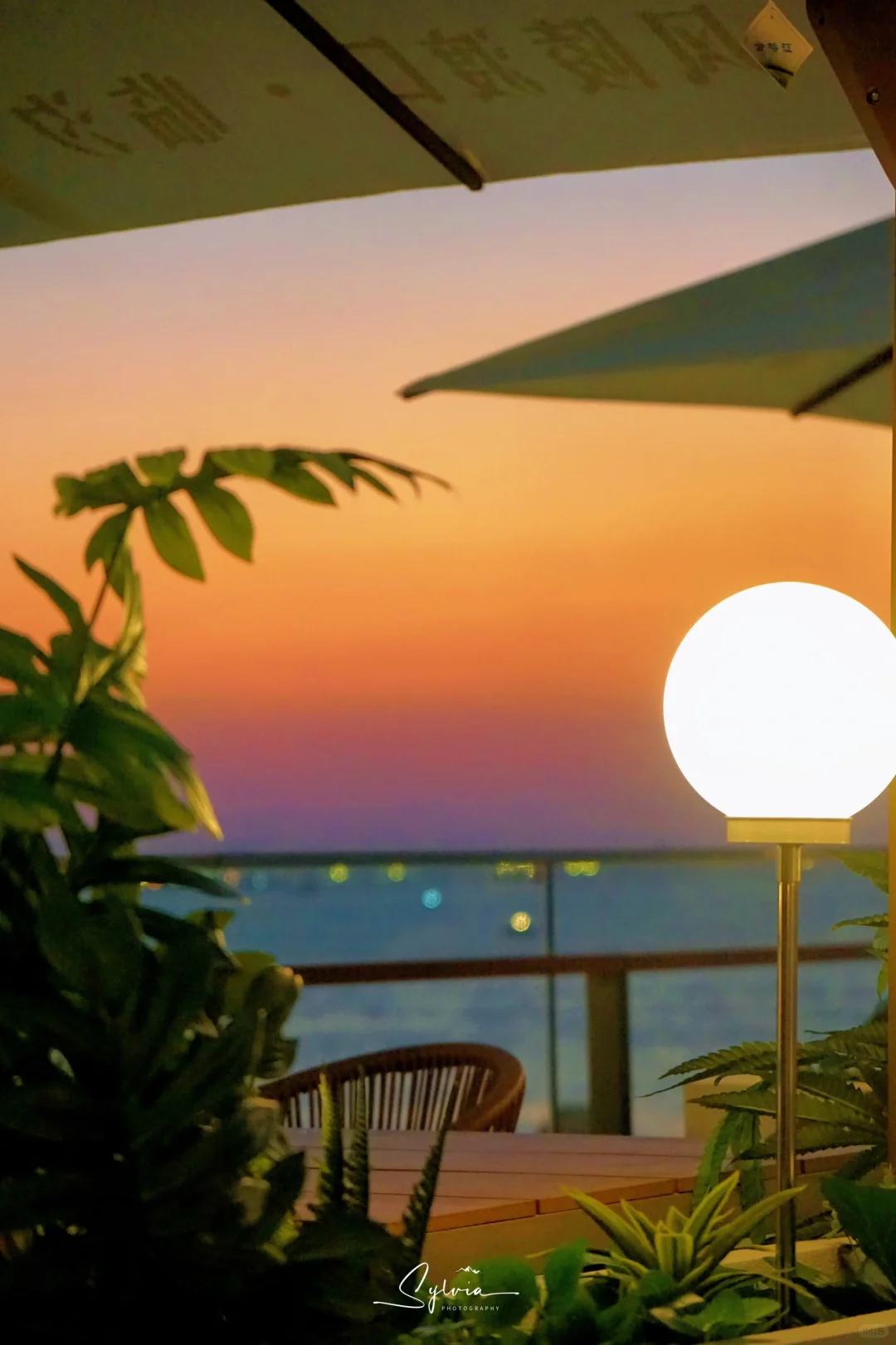 是大海打碎了落日,还是灯球遮挡了夕阳?原来漫天的晚霞只爱咖啡馆里那位温柔的小哥