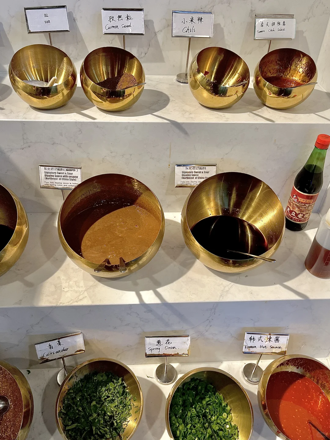 蘸料选择也多!除了普通那些以外,还有干碟,微甜的日式蘸料,东北式蘸料,麻酱,韩式辣酱![色色R]